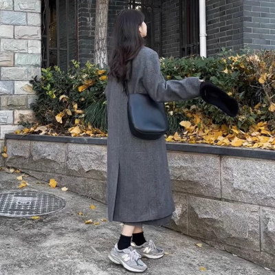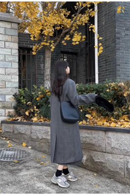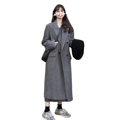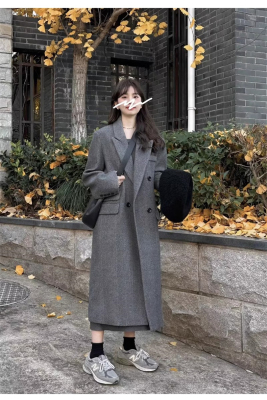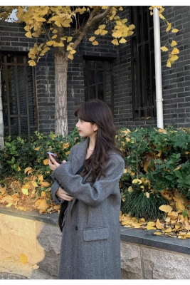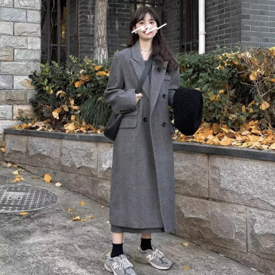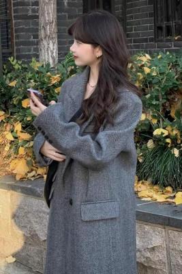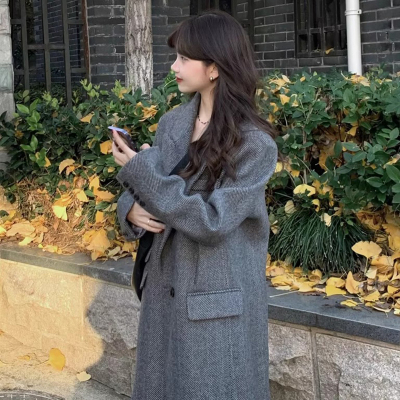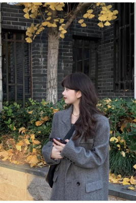 Gray suit woolen coat for women autumn and winter high-end new Korean style small temperament woolen coat
