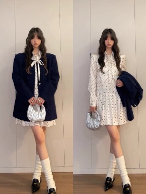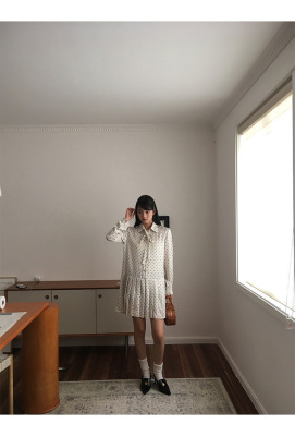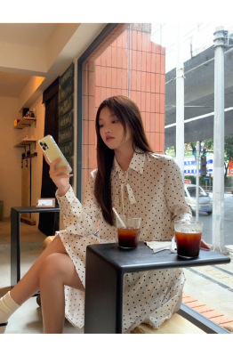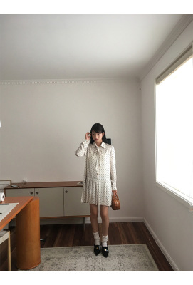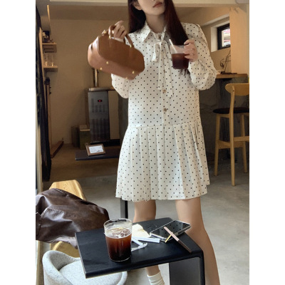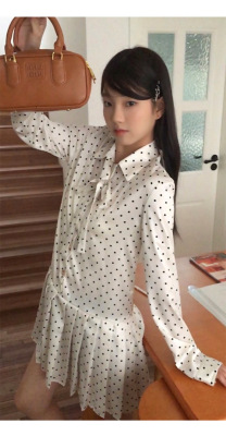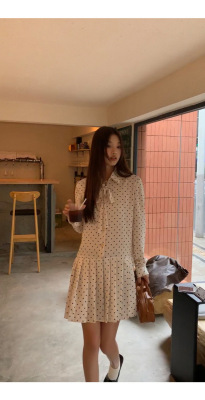 Polka dot dress women's early autumn new style French style long-sleeved autumn skirt