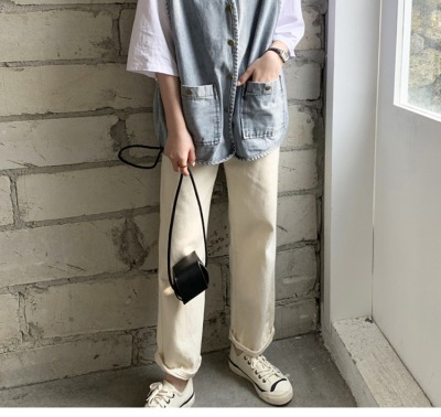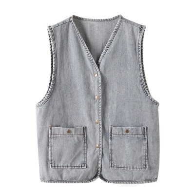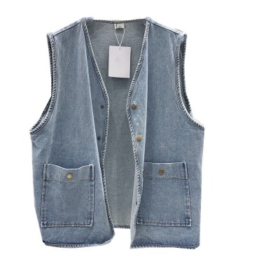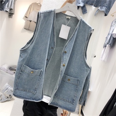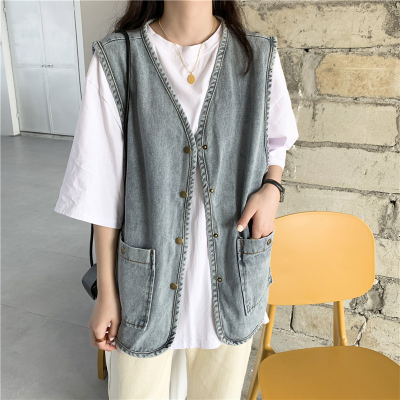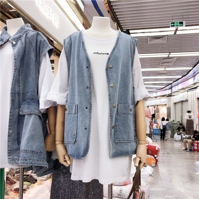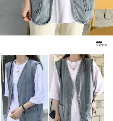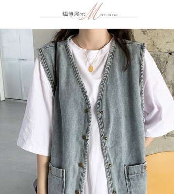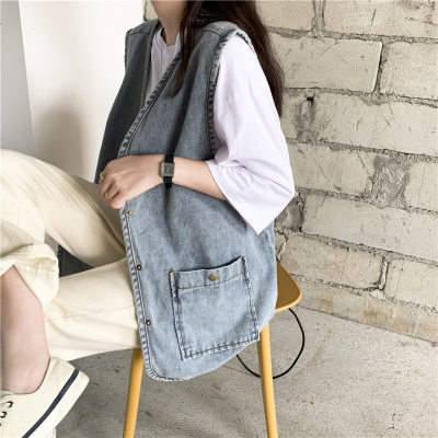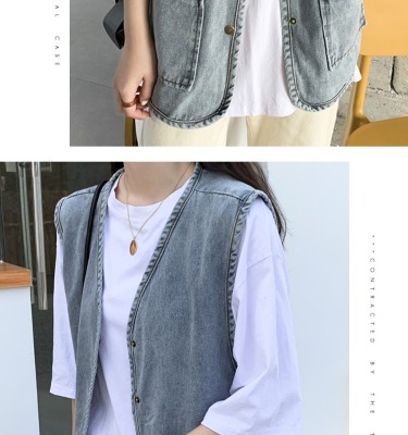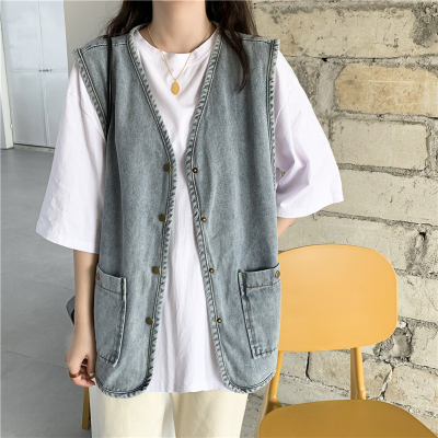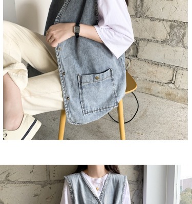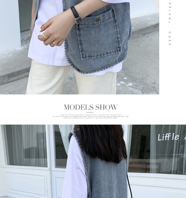 Spot Japanese retro denim workwear vest for women Korean style summer loose vest vest jacket sleeveless waistcoat cardigan