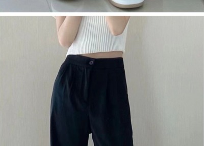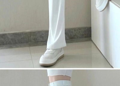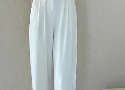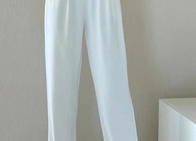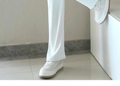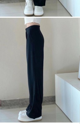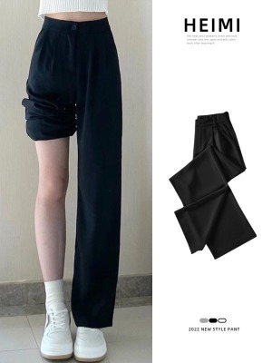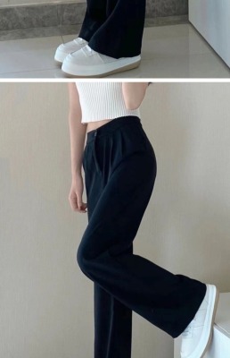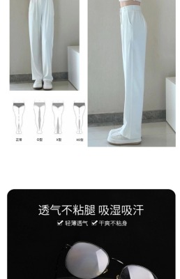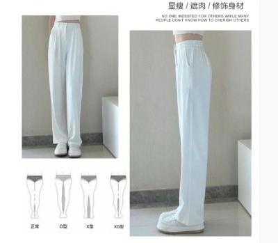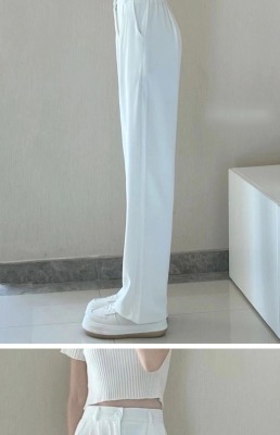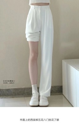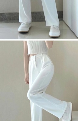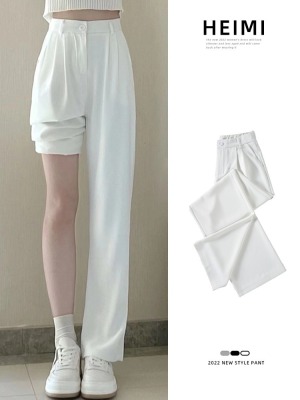 White wide-leg pants for women, spring and autumn loose high-waisted straight floor-length pants, high-end drape suit pants, trendy