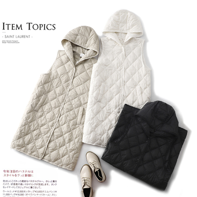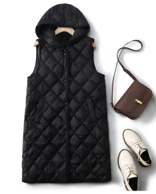 New autumn and winter loose and slim hooded vest mid-length coat for women
