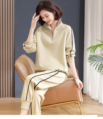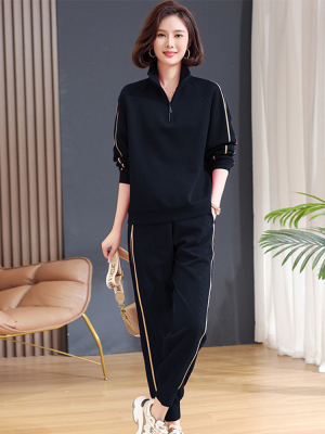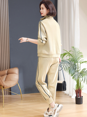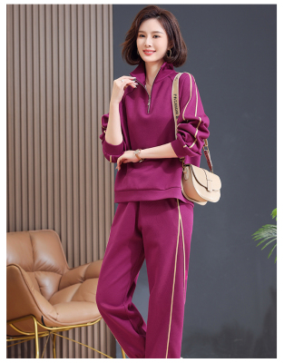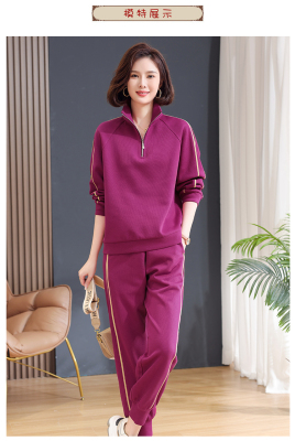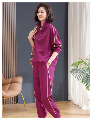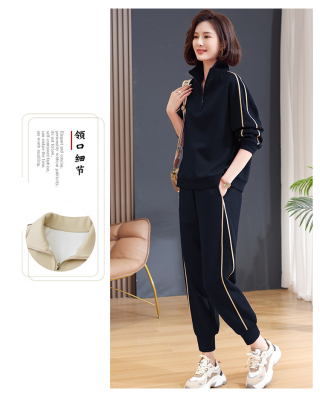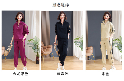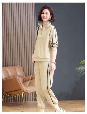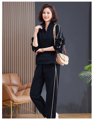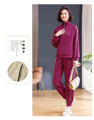 Mom lapel sweatshirt two-piece set, fashionable, middle-aged and elderly new casual sportswear suit for women, spring and autumn loose
