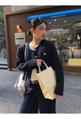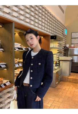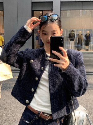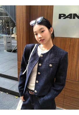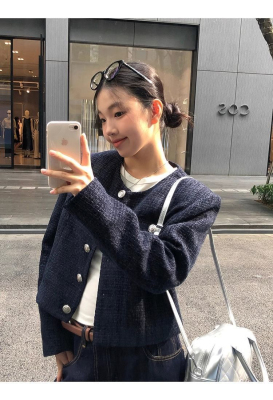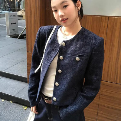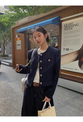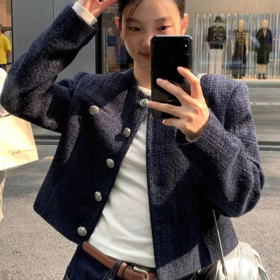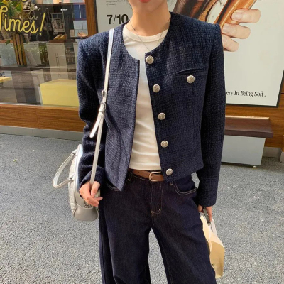 Xiaoxiangfeng jacket short 2024 long-sleeved retro autumn temperament high-end round neck new French top