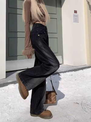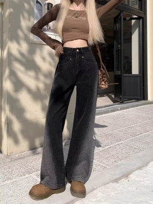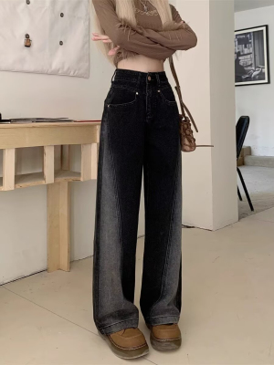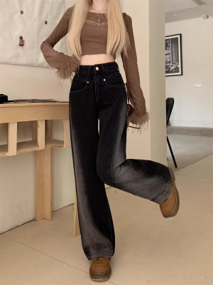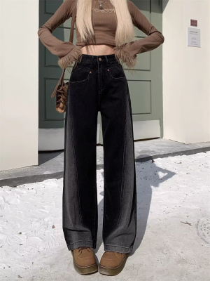 2024 Autumn Winter Plus Size Fat MM American Style Ins Streetwear Niche Versatile Heavy Craft Slim Straight Leg Jeans