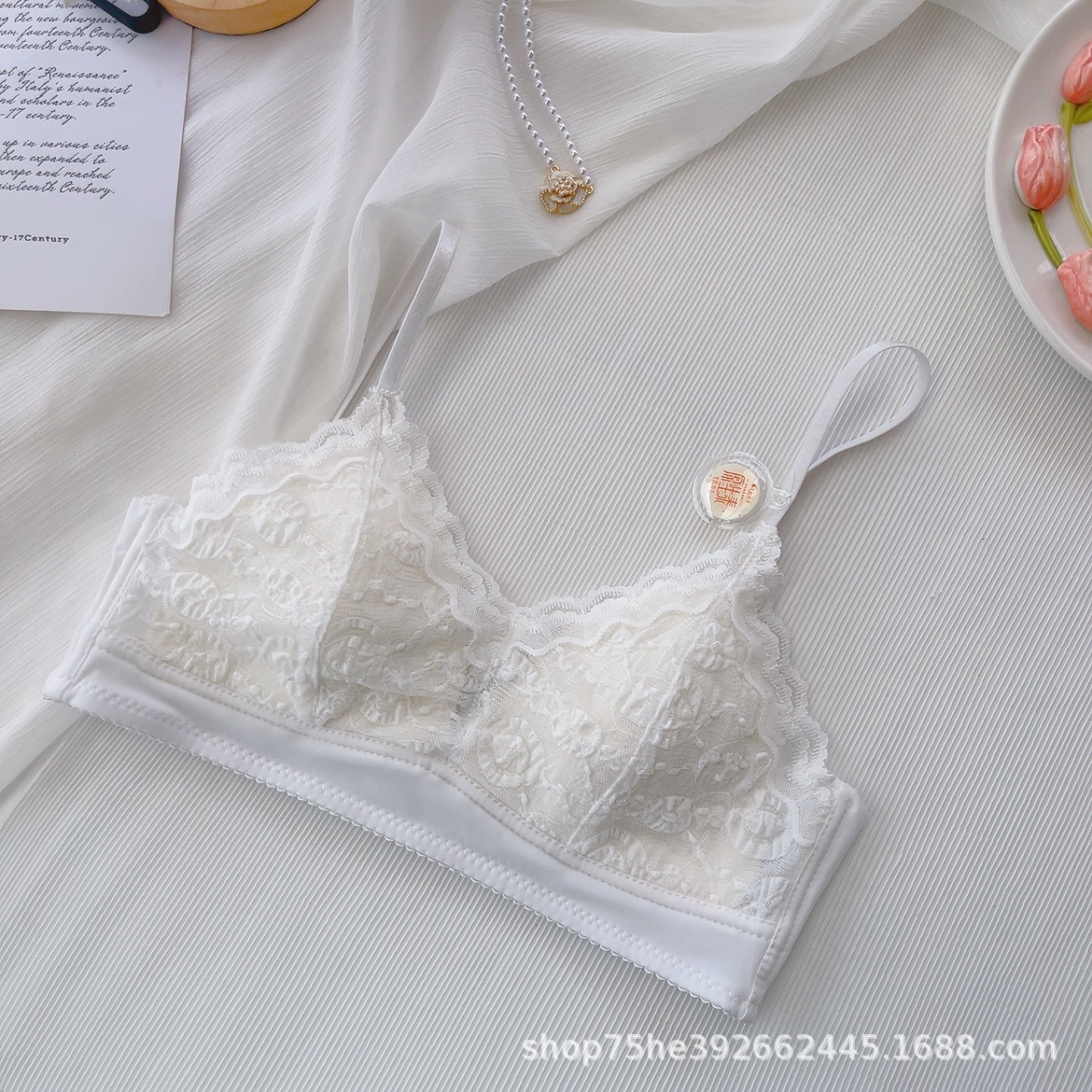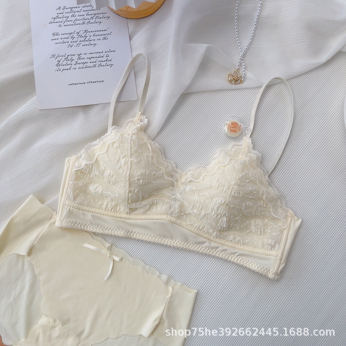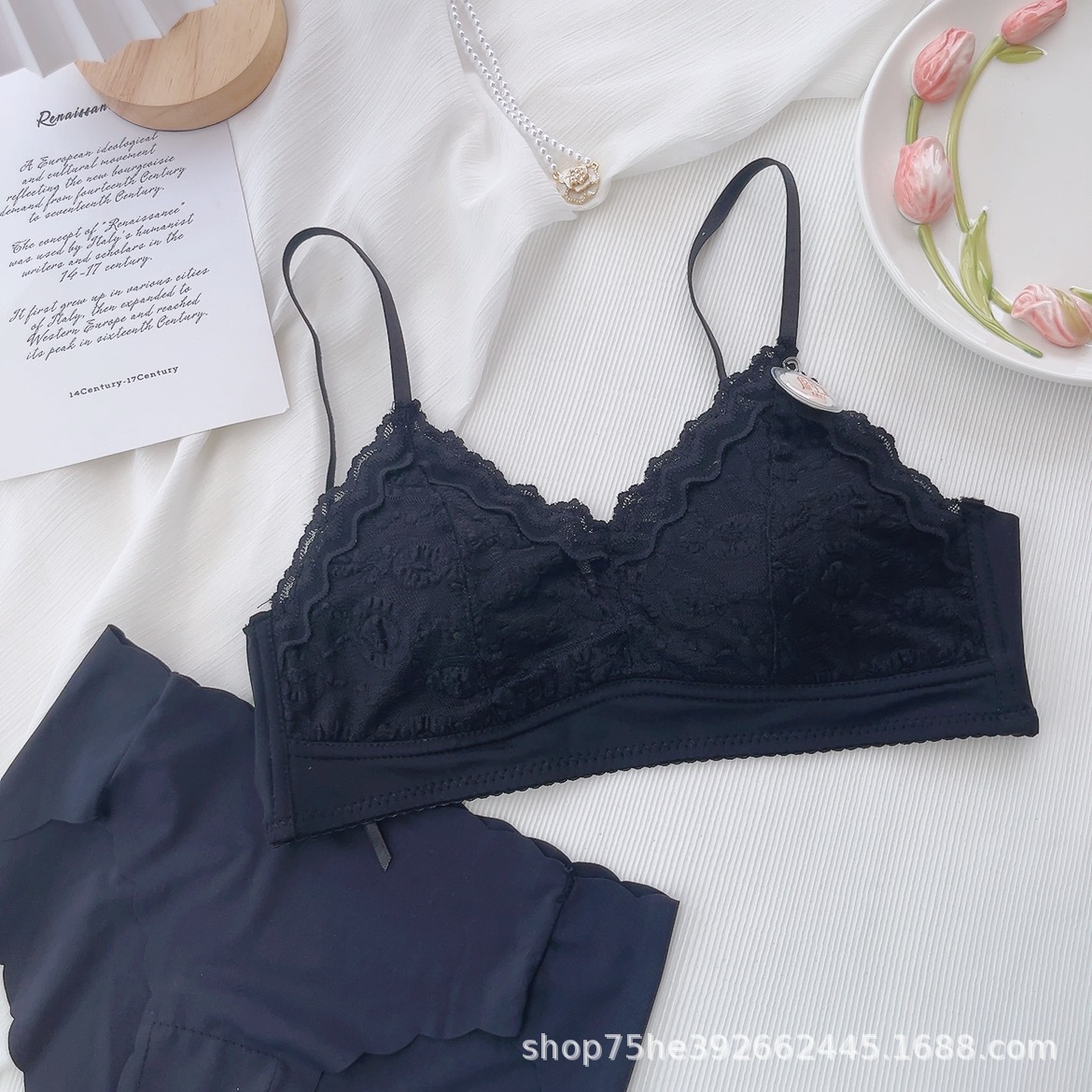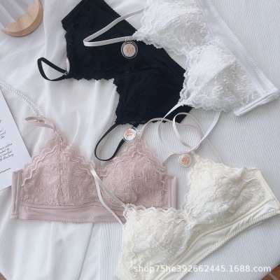 French style underwear for women with small breasts, comfortable and comfortable without steel rings, summer thin triangular cup girl bra set