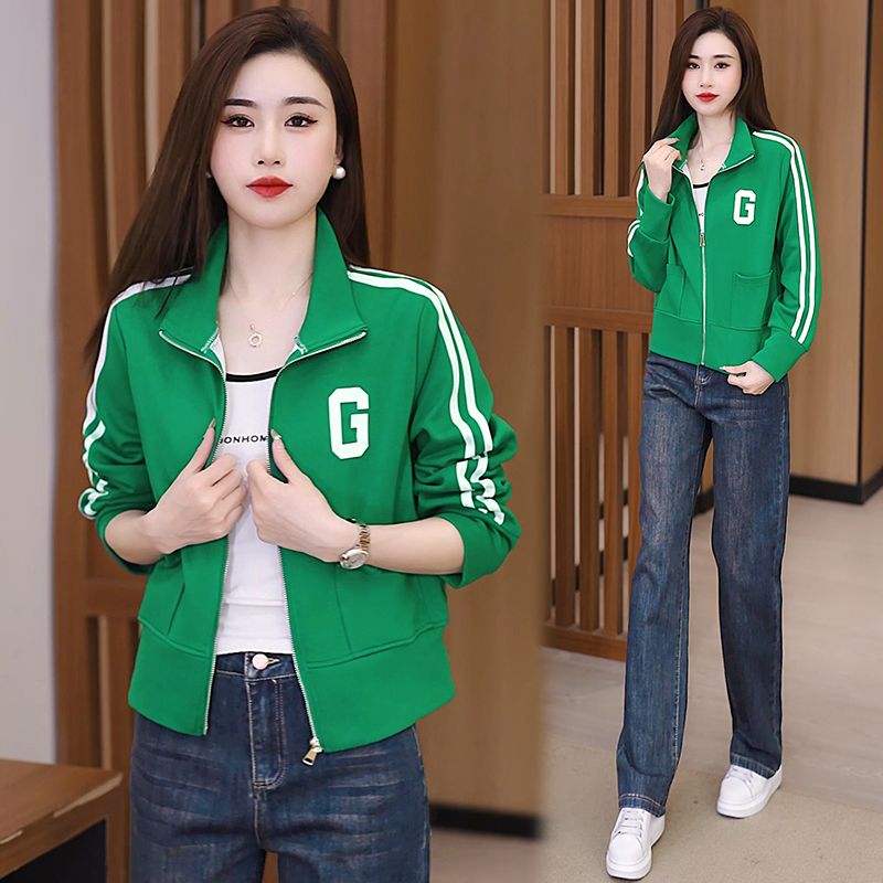 Small short zipper jacket for women, new age-reducing spring and autumn loose Korean style baseball uniform top