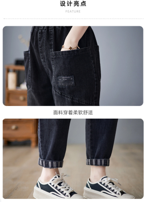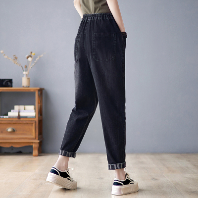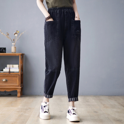 New style jeans women's loose large size retro elastic waist black casual women's trousers harem pants