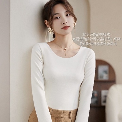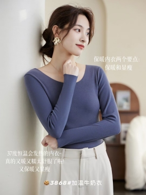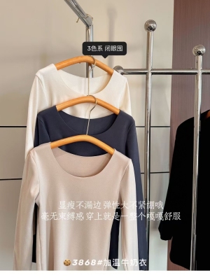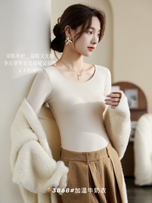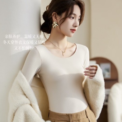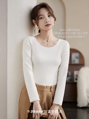 Autumn/Winter Korean Style Pure Color Slim Fit Warm Innerwear Top for Women with Thicken Fleece Long Sleeve Underwear Top