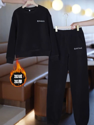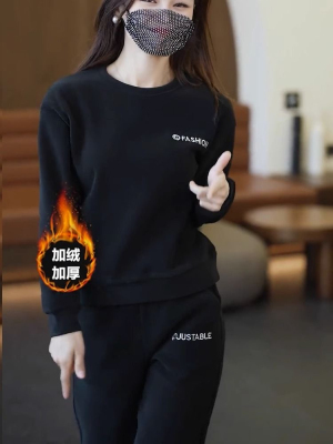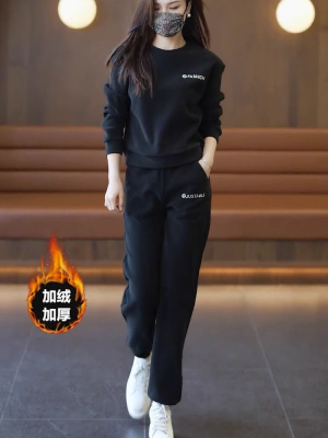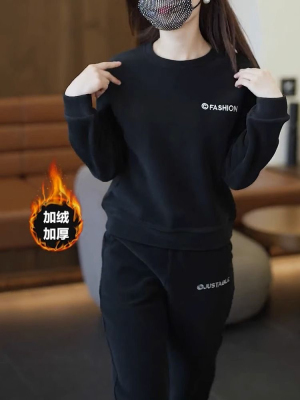 Ready-stock spring and autumn tops for women, fashionable and fashionable suits, high-end sweatshirts, velvet and thickened two-piece sets