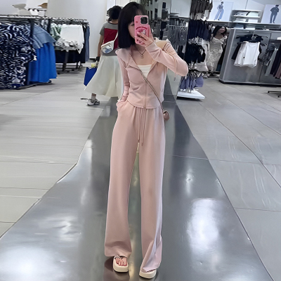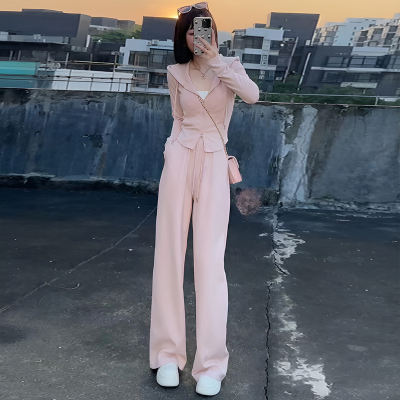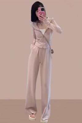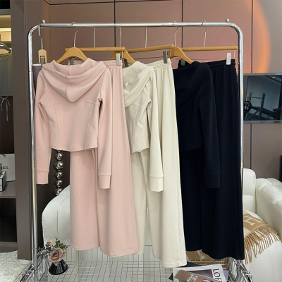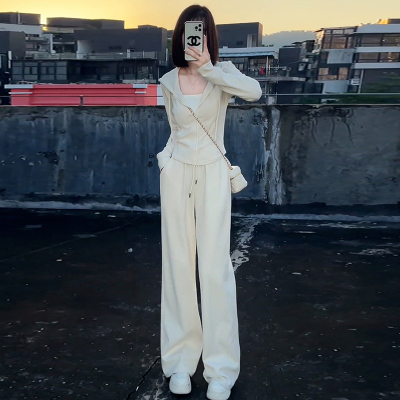 Official photo, high cotton content, small body sportswear suit, women's autumn new sweatshirt, wide-leg pants, two-piece trendy set