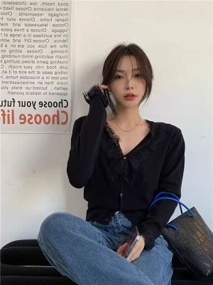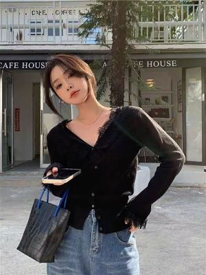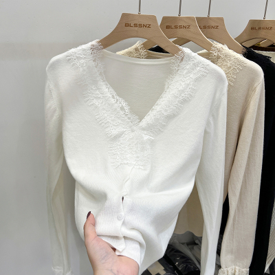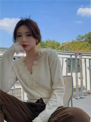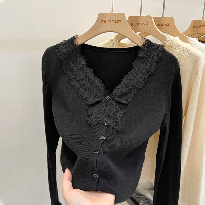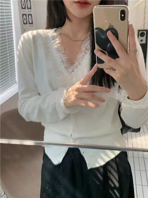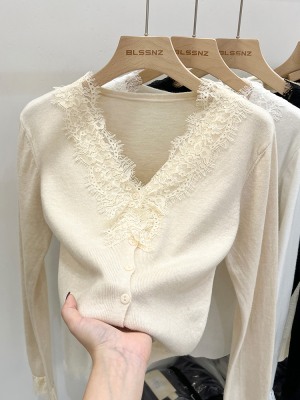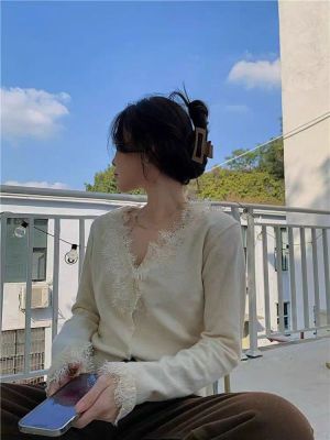 Lace V-neck Knit Cardigan for Women - Spring, Autumn, Winter Design, Unique and Stylish Short-Sleeve Top for Women