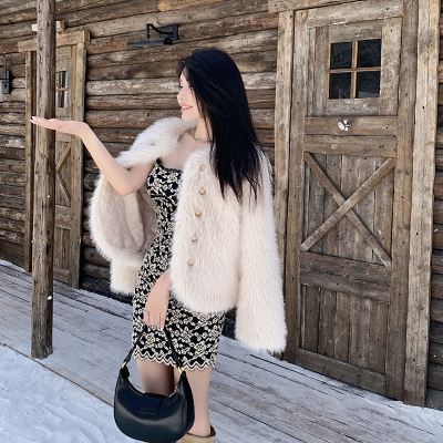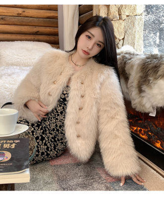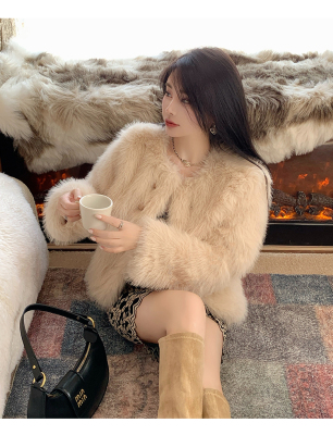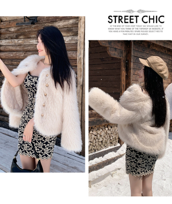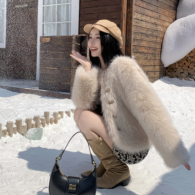 Real shot of Korean version of imitation fox fur short fur coat for women in winter new fashion environmentally friendly fur warm tops for women