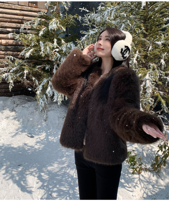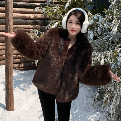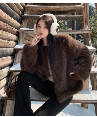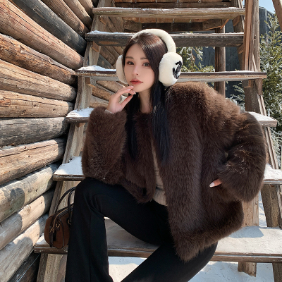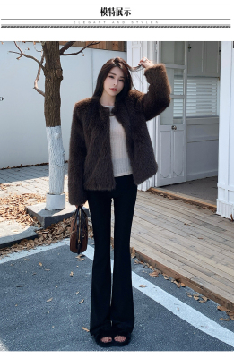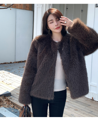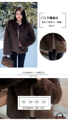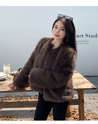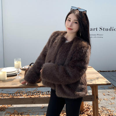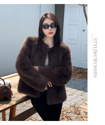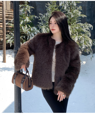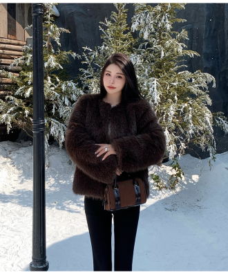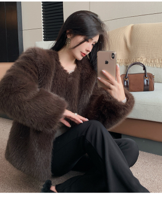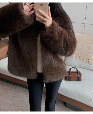 Real shot of new winter eco-friendly fox fur coat for women, young Toka fur high-end coat to look slim