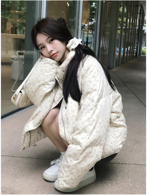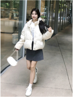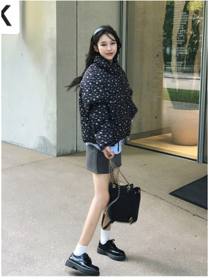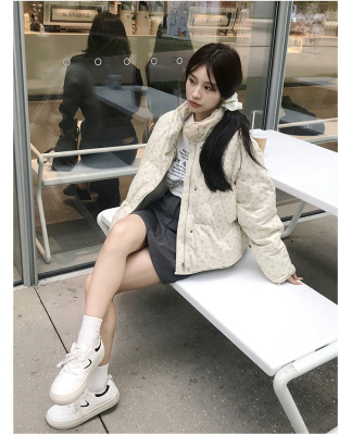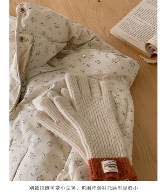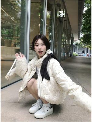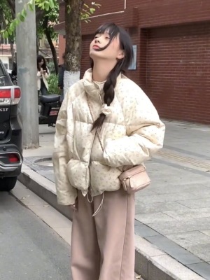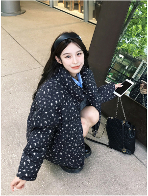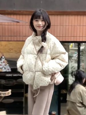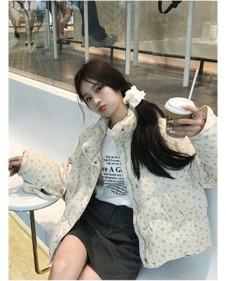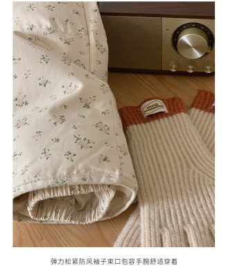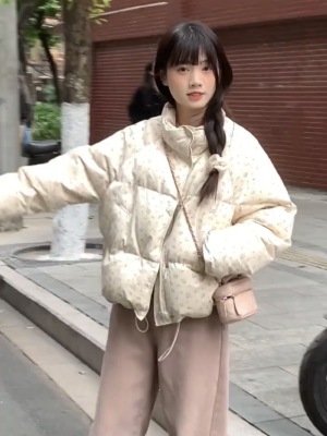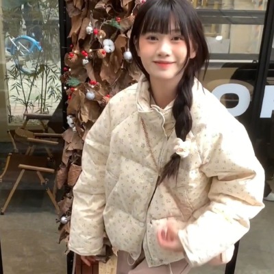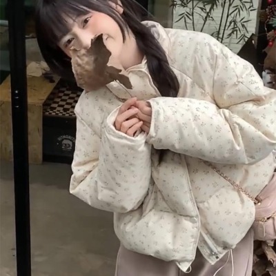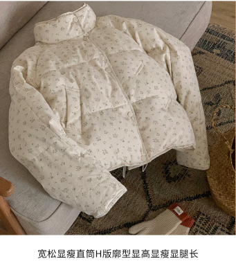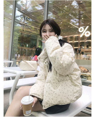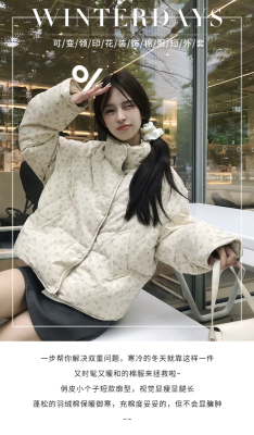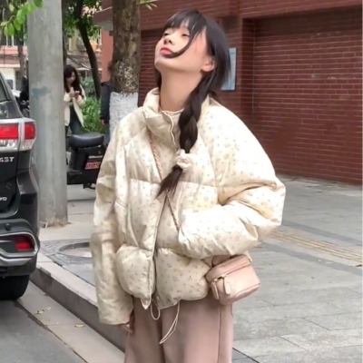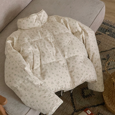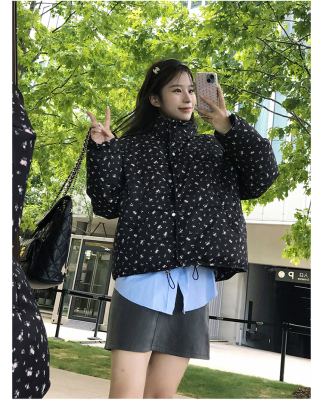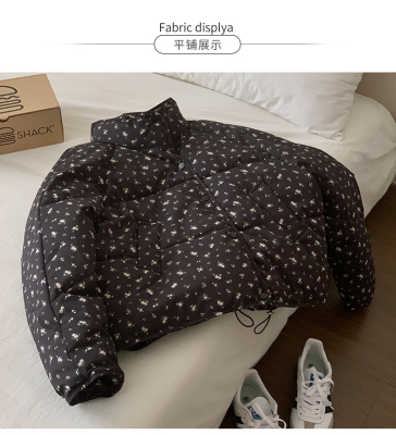 American short style fufu floral bread cotton coat for women winter oversize loose warm thickened coat cotton coat