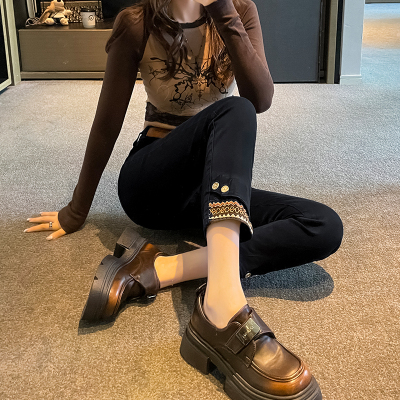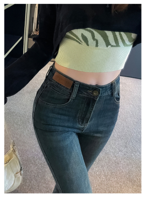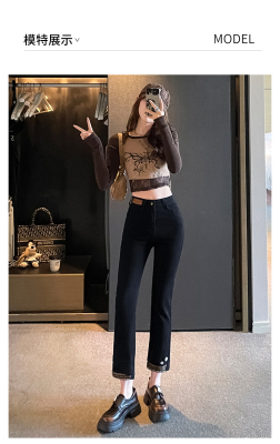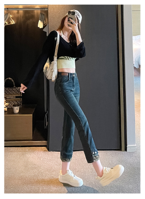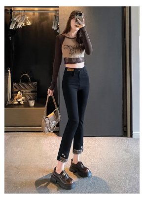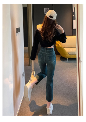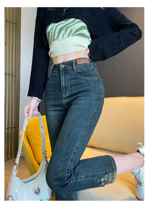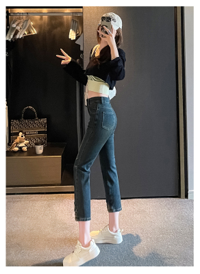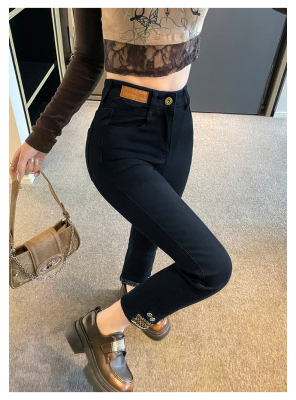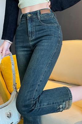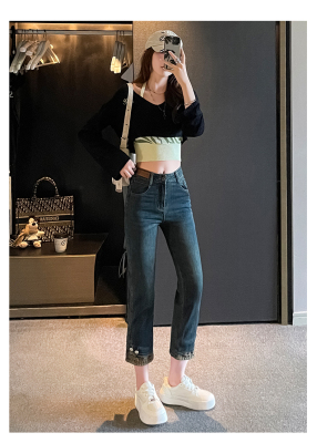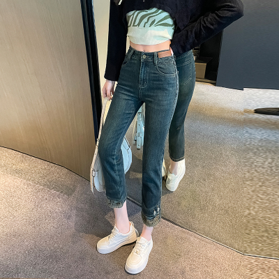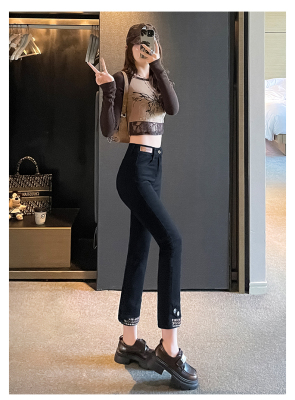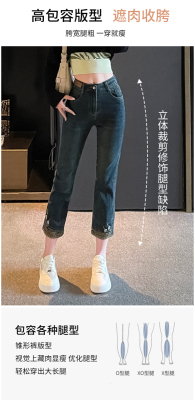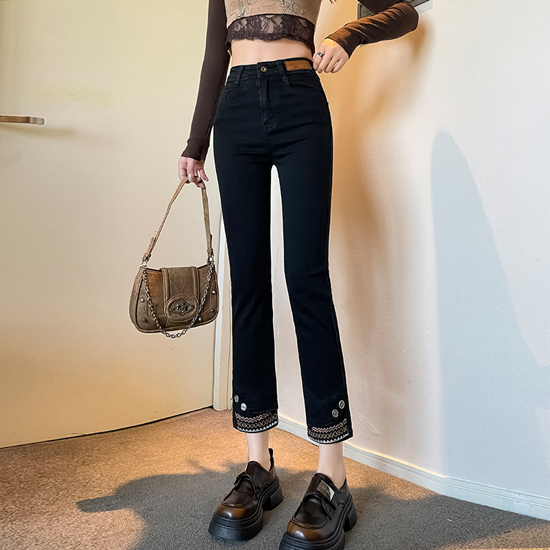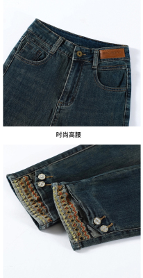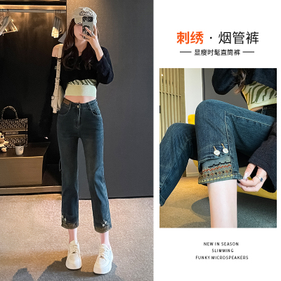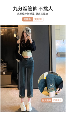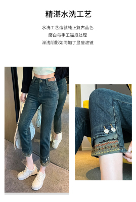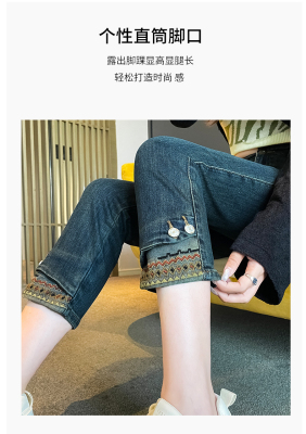 Retro New Chinese Style Straight Jeans Women's New High Waist Splicing Nine Points Embroidered National Style Cigarette Pants