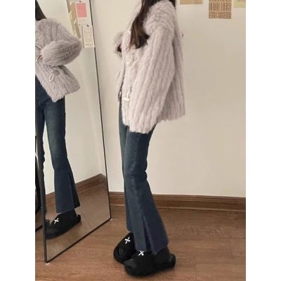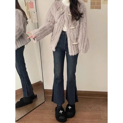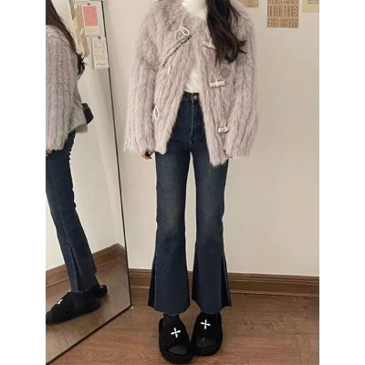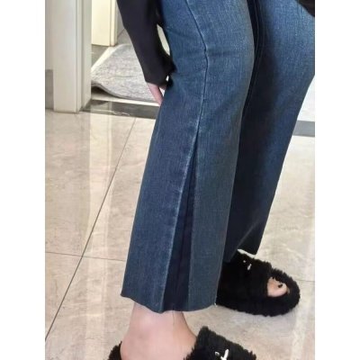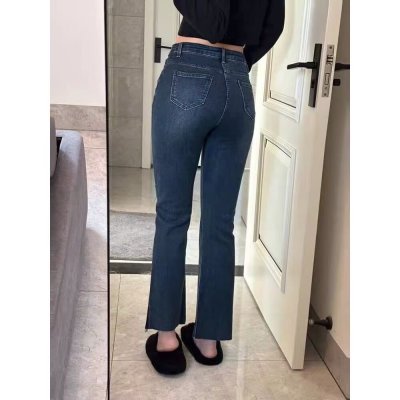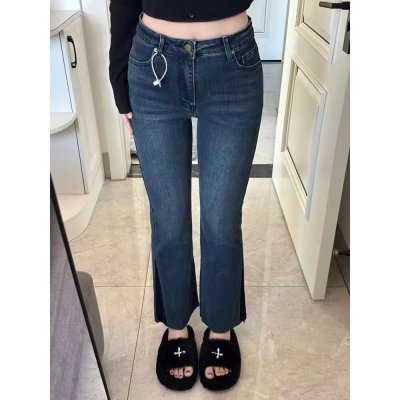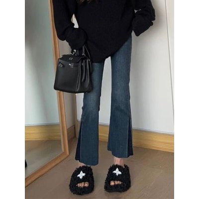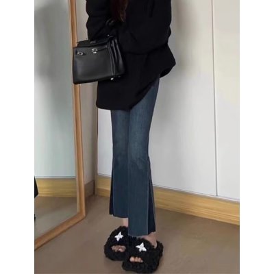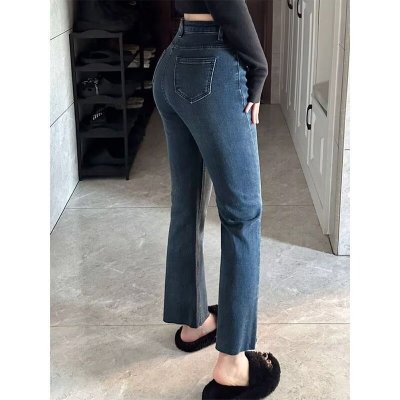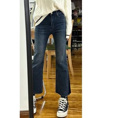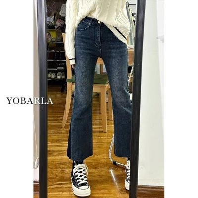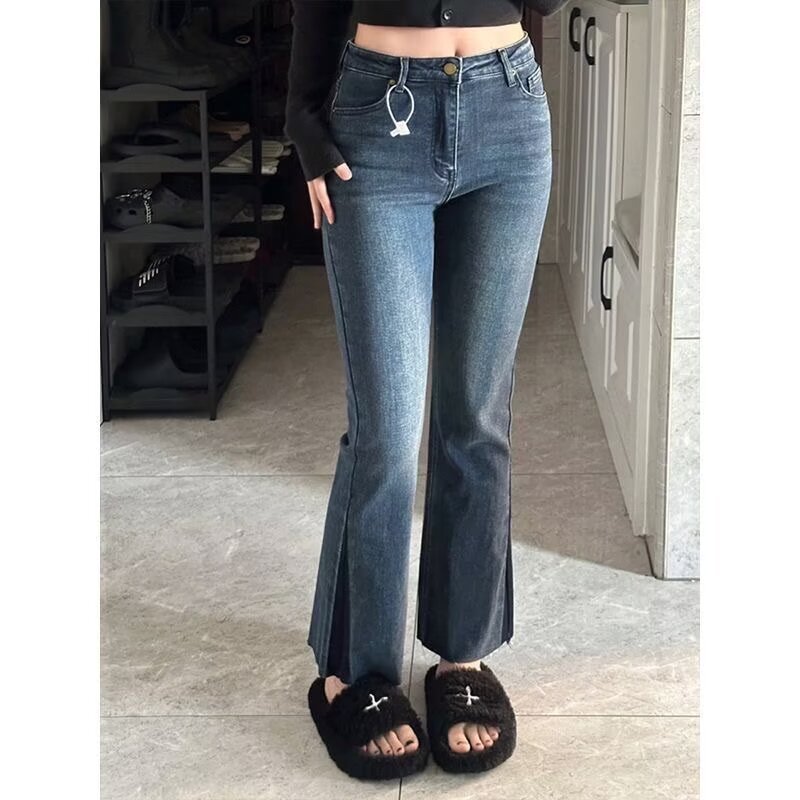 New Hong Kong style long trousers for tall women, high-waisted denim boot-cut trousers for spring and summer, thin floor-length mopping horseshoe horns