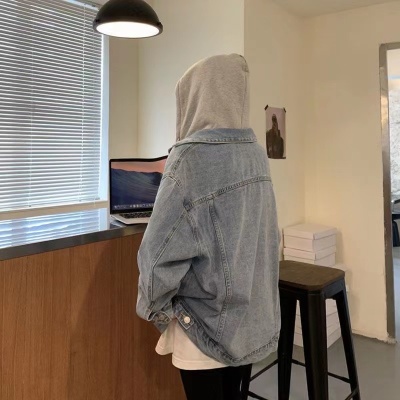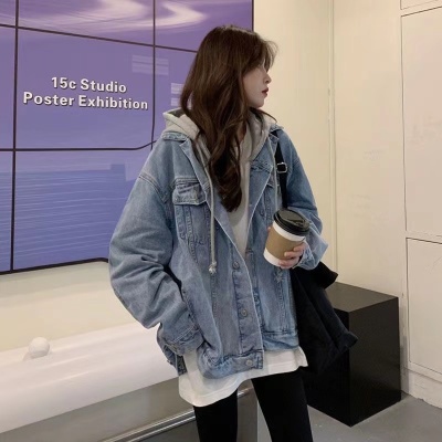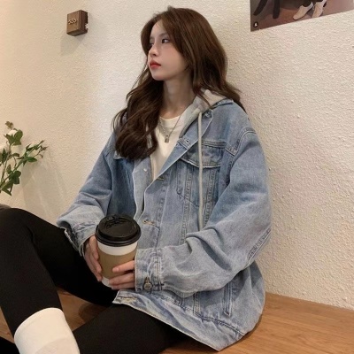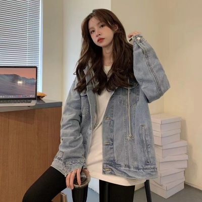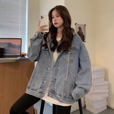 Winter denim jacket for women spring and autumn ins trendy hooded jacket large size fat mm loose casual long-sleeved top