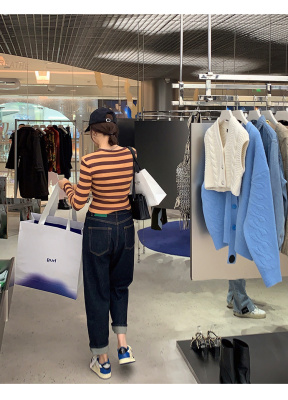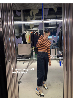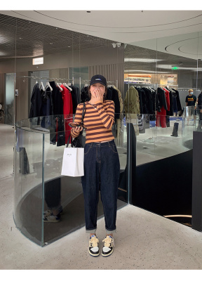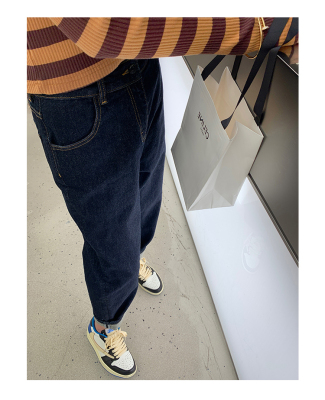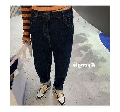 High-waist jeans for women spring and autumn 2024 new large size fat sister mm straight daddy pants slimming harem pants