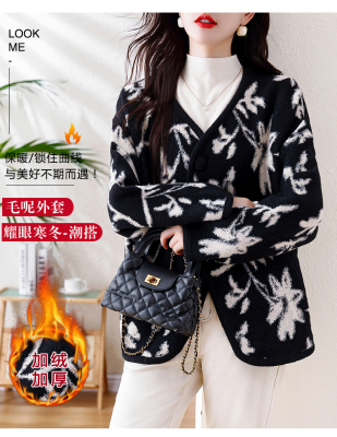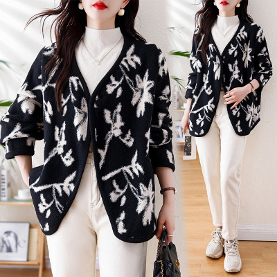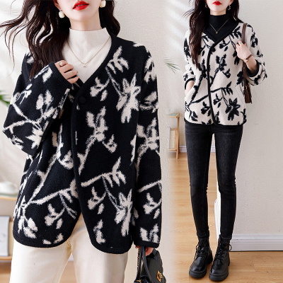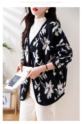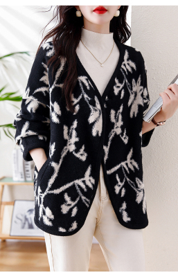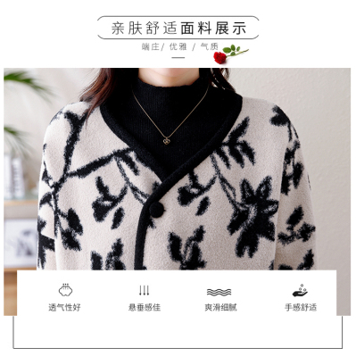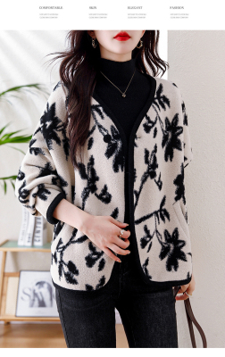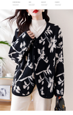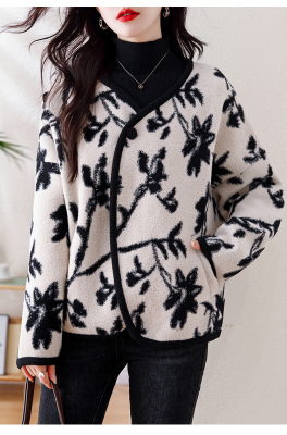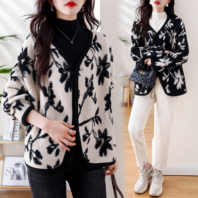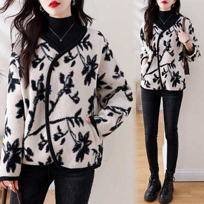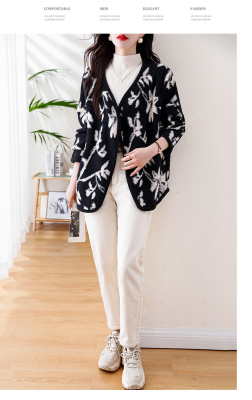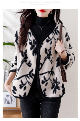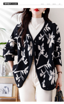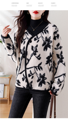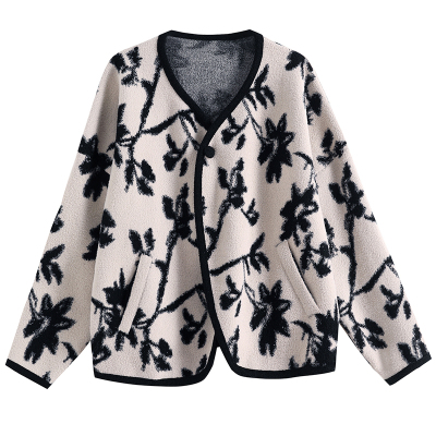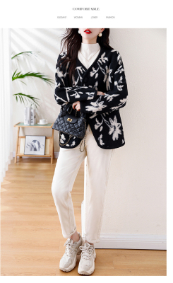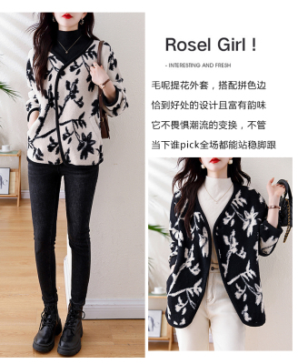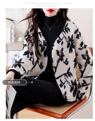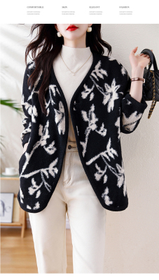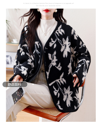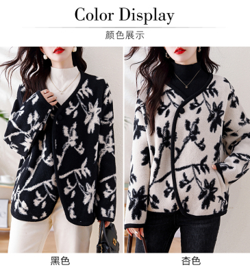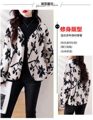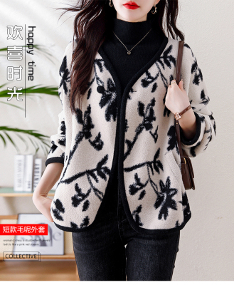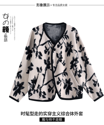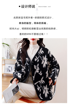 Actual shot of 2024 plus size women's autumn and winter new double-sided cashmere loose blue and white porcelain high-end woolen jacket