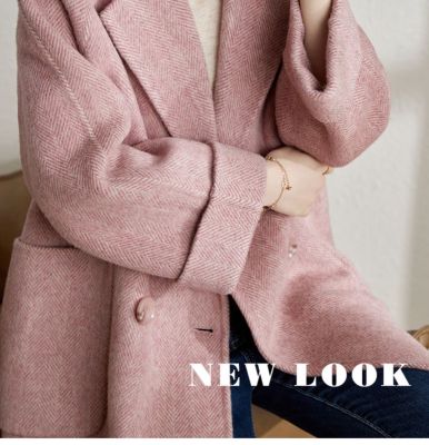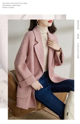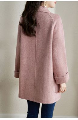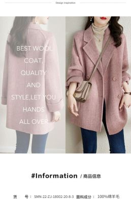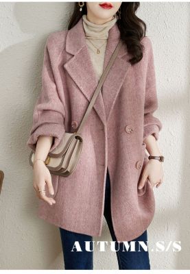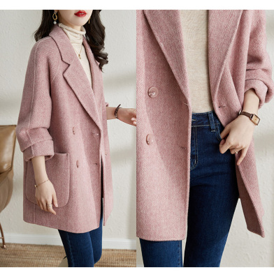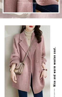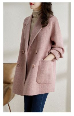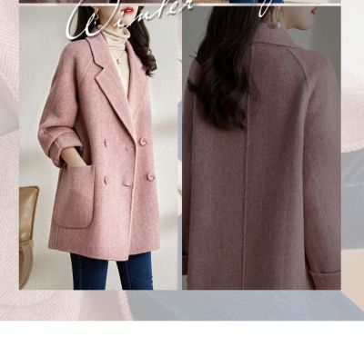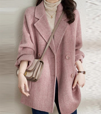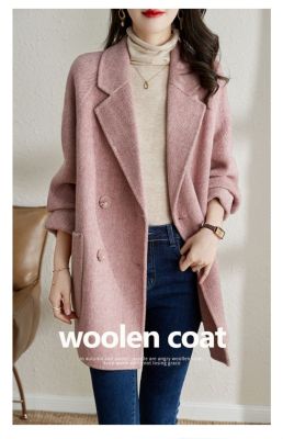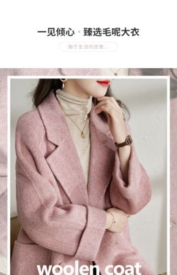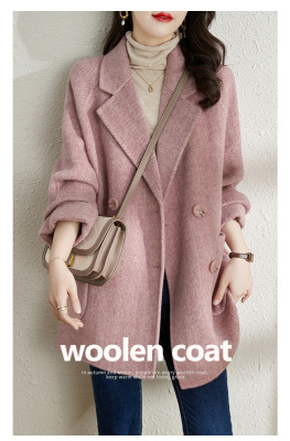 2024 new autumn and winter pink woolen coat for women small medium length Korean style woolen coat with casual temperament