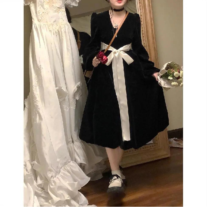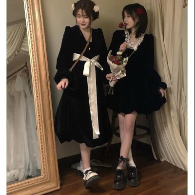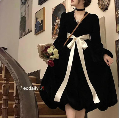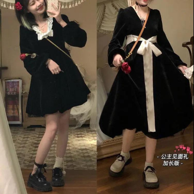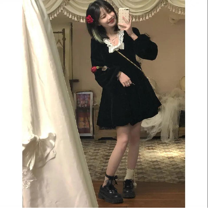 Retro lantern skirt pure lust style petite dress female student Korean style mid-length loose slimming A-line skirt
