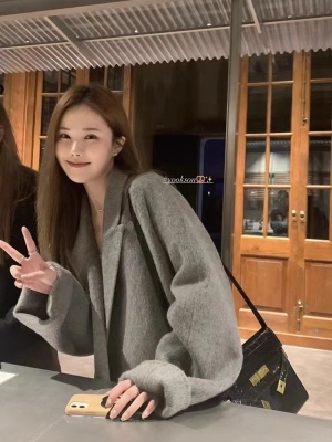 Spot goods! HEYGIRL black brother new winter high count long hair double-sided woolen jacket