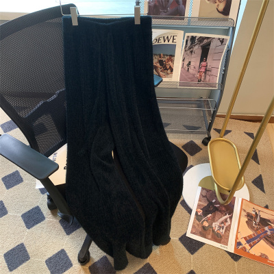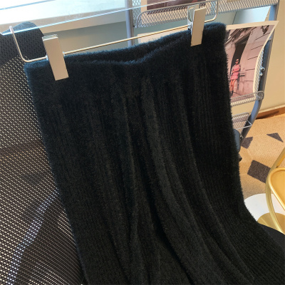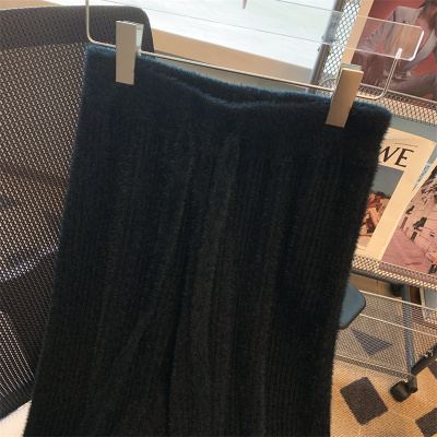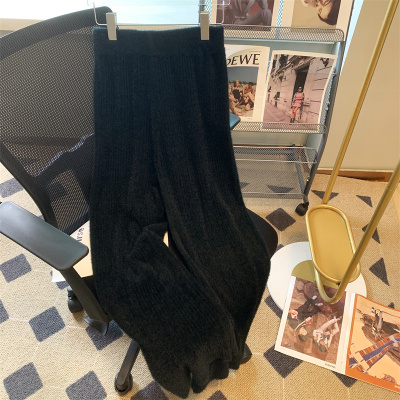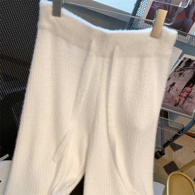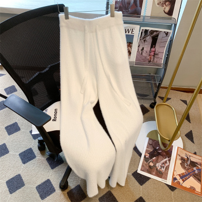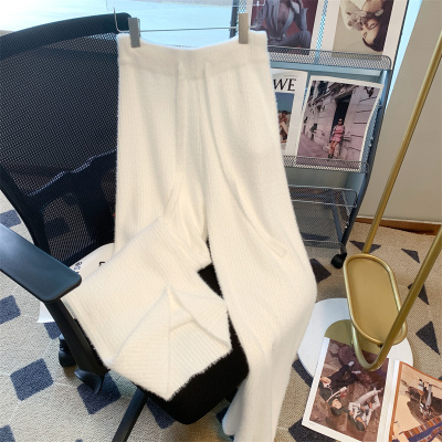 Soft waxy furry mink velvet wide-leg pants for women in autumn and winter salt style wear lace-up casual pants drapey knitted