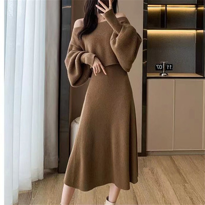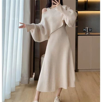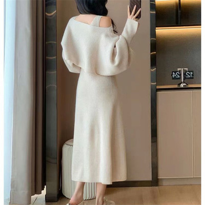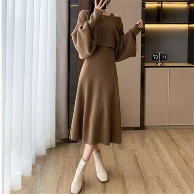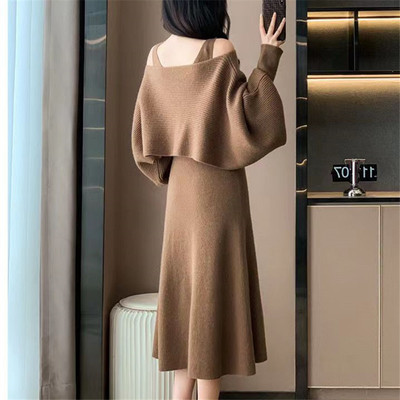 Designed sweater suspender dress two-piece set for women in autumn and winter new French gentle style knitted suit skirt