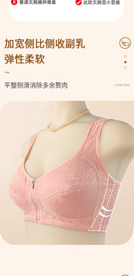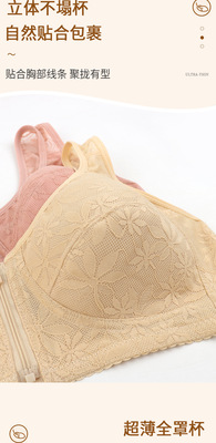 New front zipper middle-aged and elderly large size bra summer ultra-thin underwear women's wire-free push-up mom bra