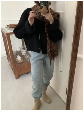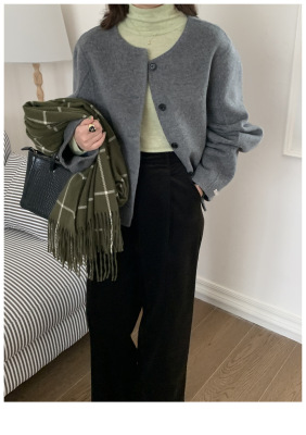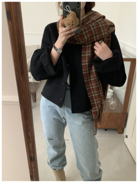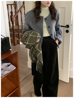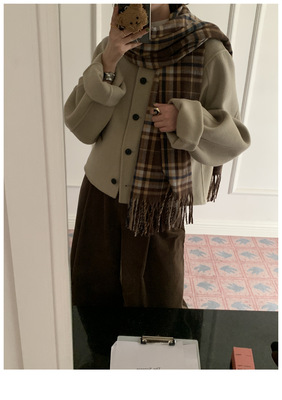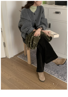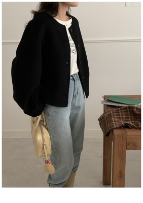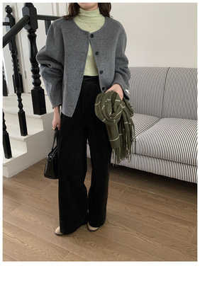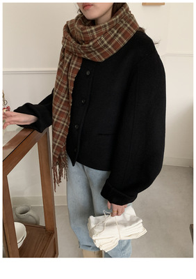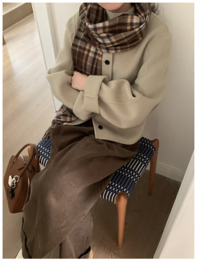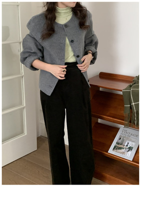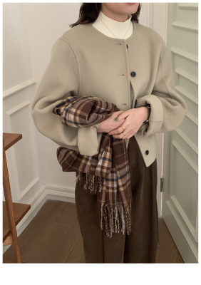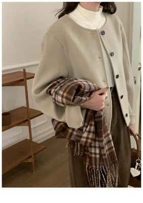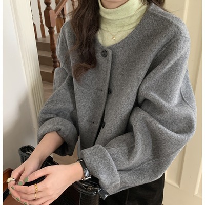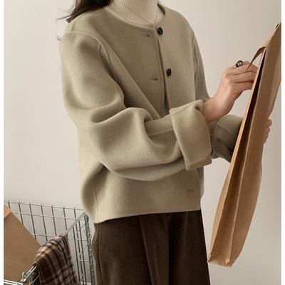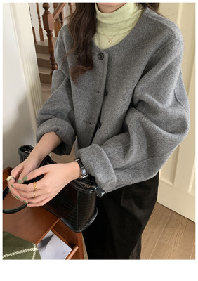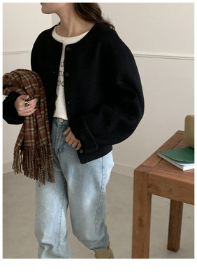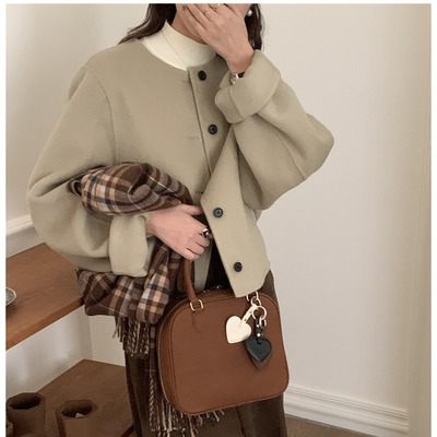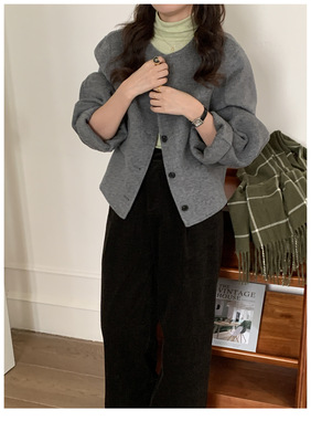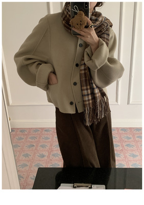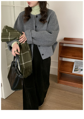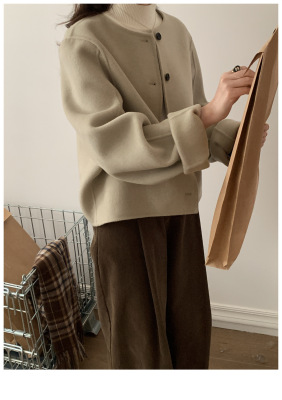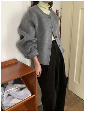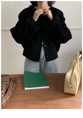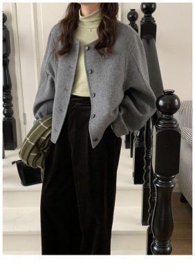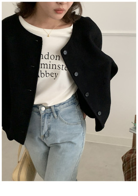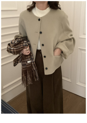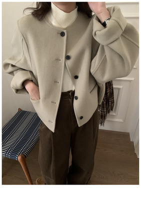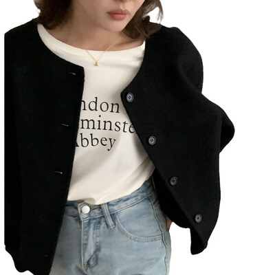 2024 Spring New INS Style Round Neck Short Wool Jacket