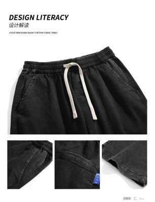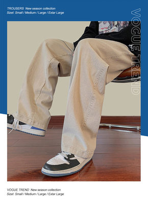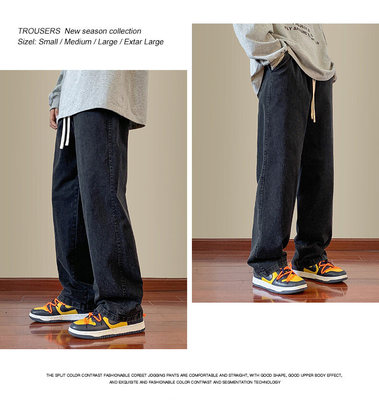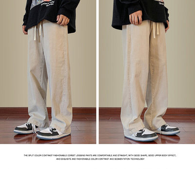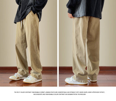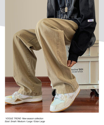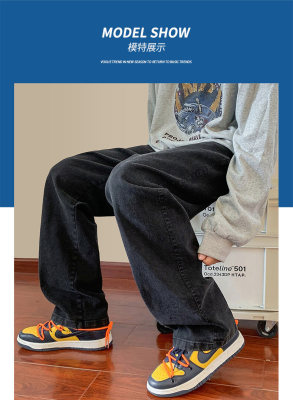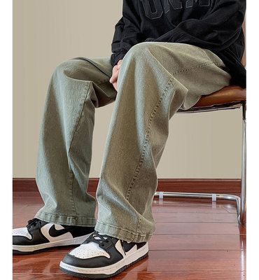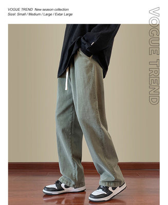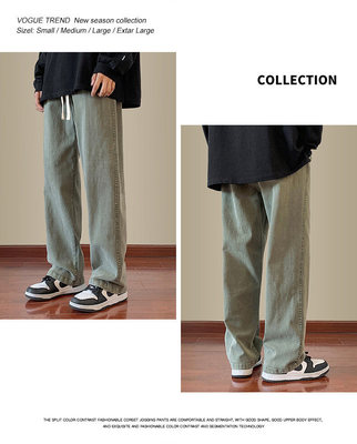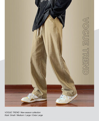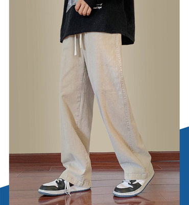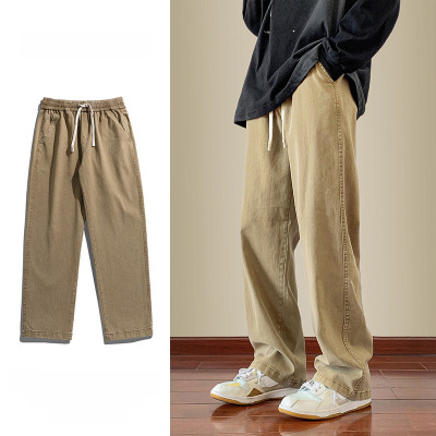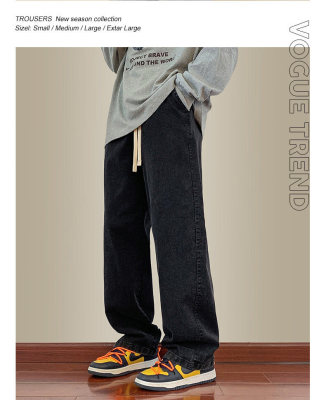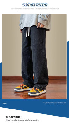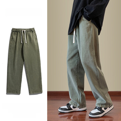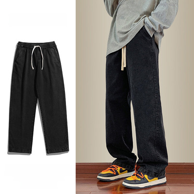 Jeans boys American style 2024 autumn new loose trendy brand cotton pants men's elastic waist straight casual pants