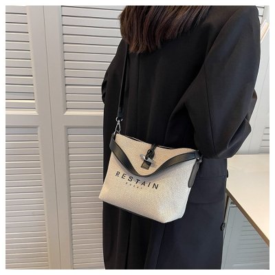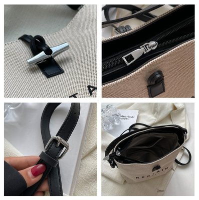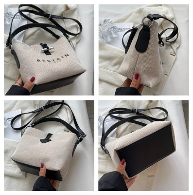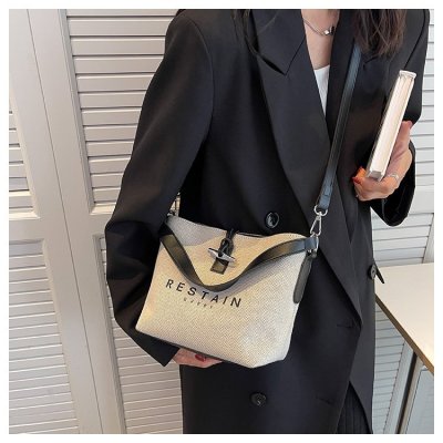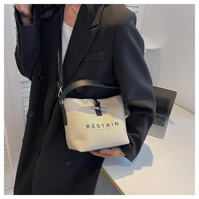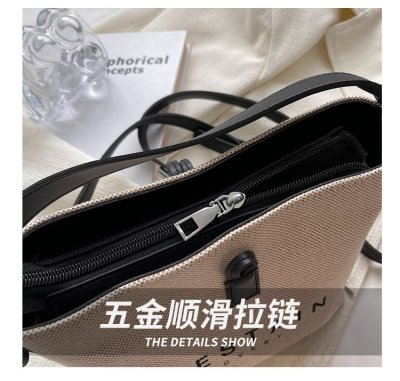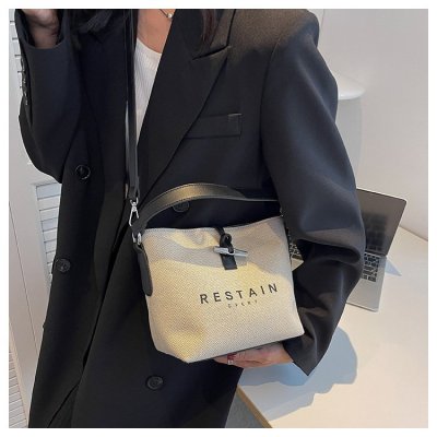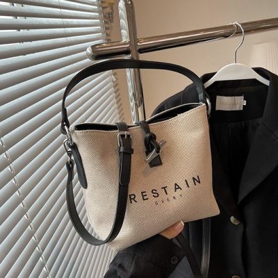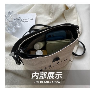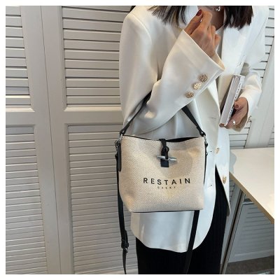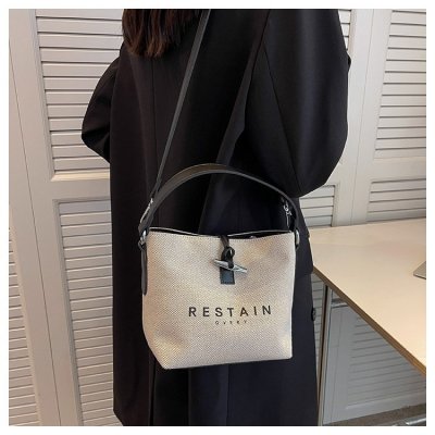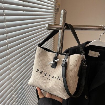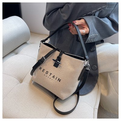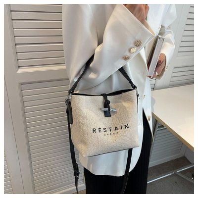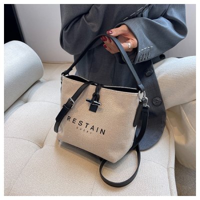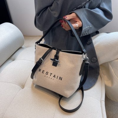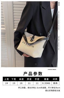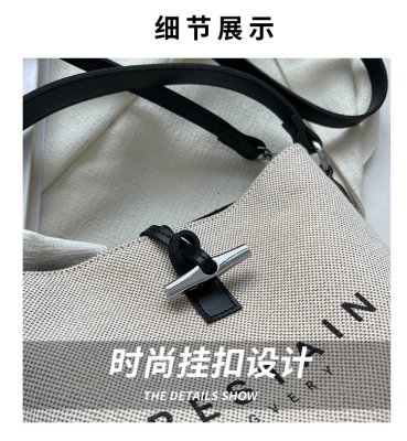 High version of the new Longxiang bag bamboo canvas bucket bag large simple versatile portable shoulder crossbody women's bag trendy