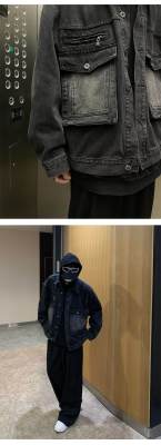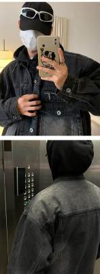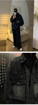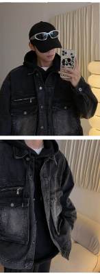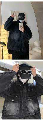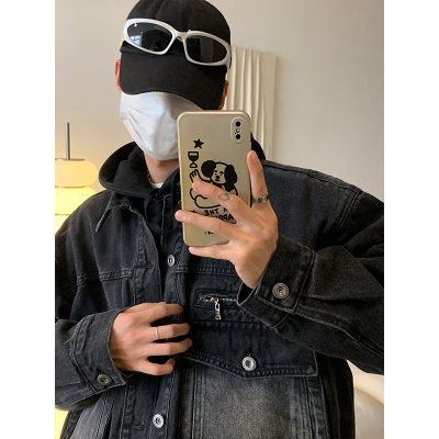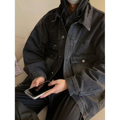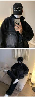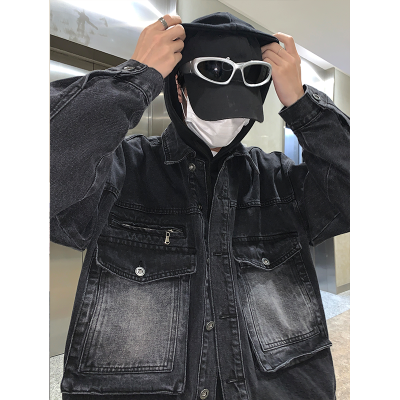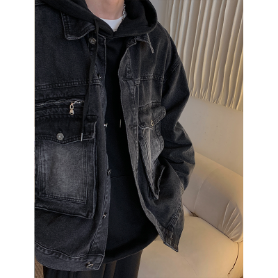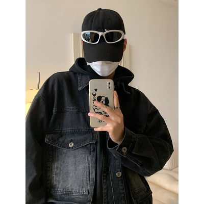 Men's loose black casual denim jacket top jacket