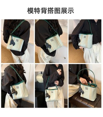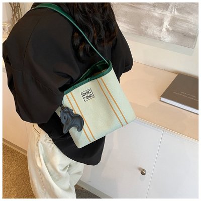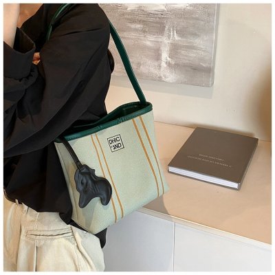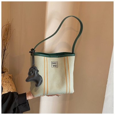 Cloth bag women's 2024 new summer niche design shoulder bag Korean canvas hand bucket bag armpit bag