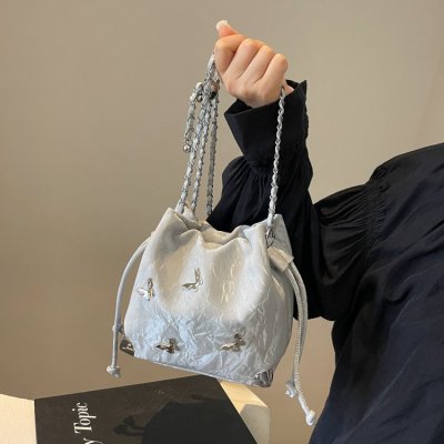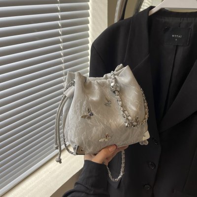 High-end metal bow bucket bag for women 2024 summer new style niche drawstring bag fashionable women's bag