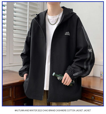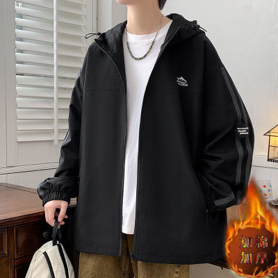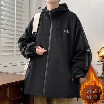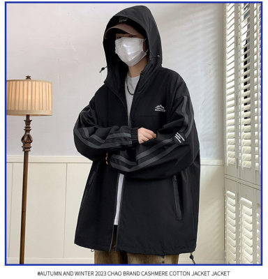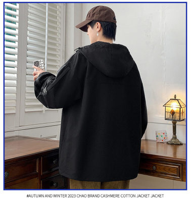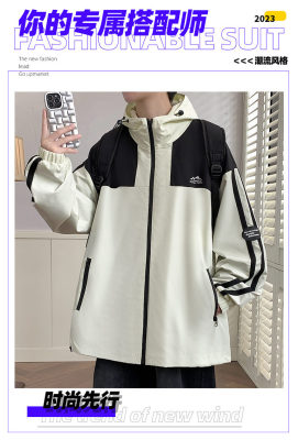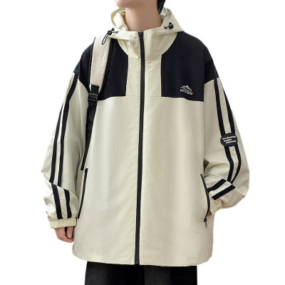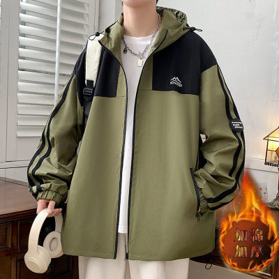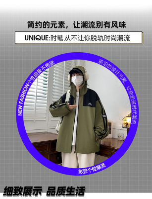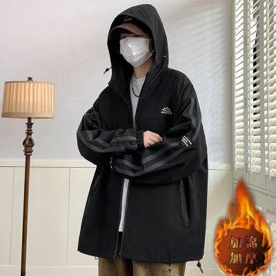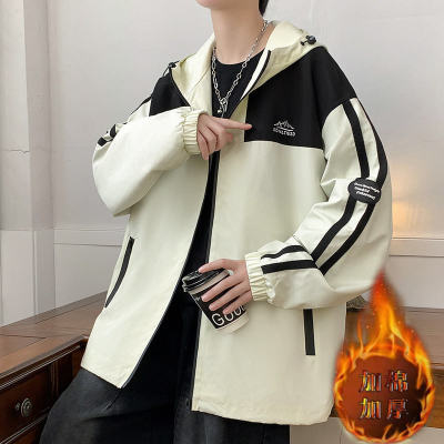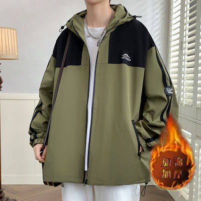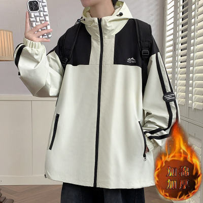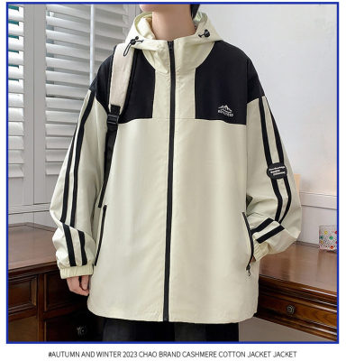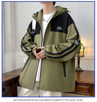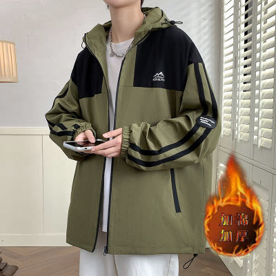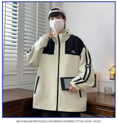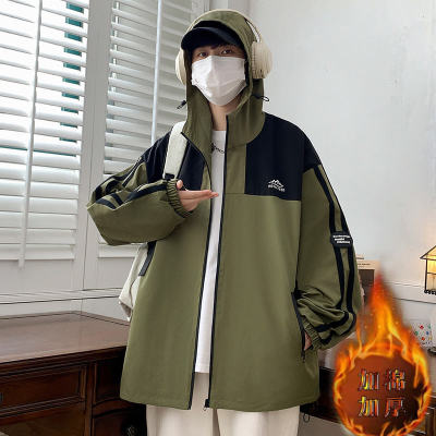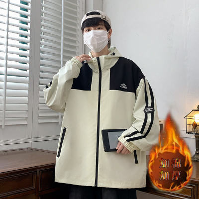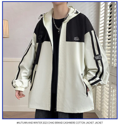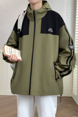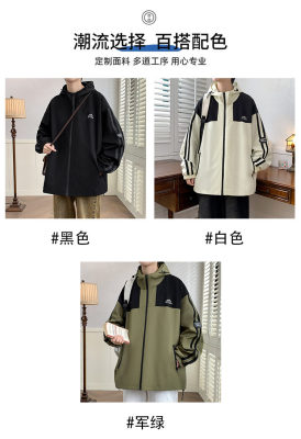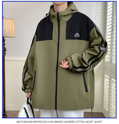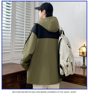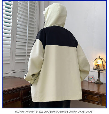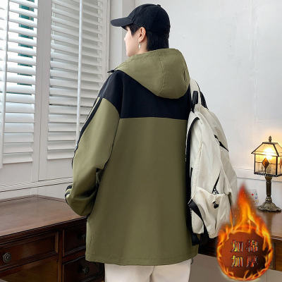 Outdoor hooded Hong Kong style fashionable color matching men's jacket loose and versatile jacket - thickened