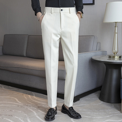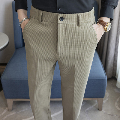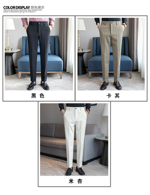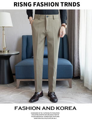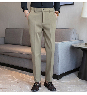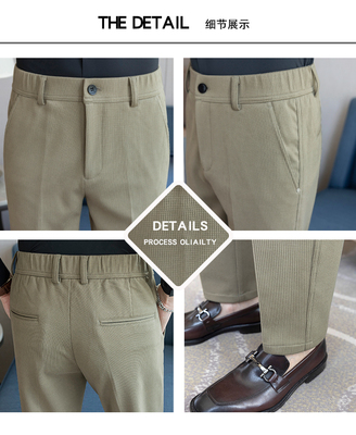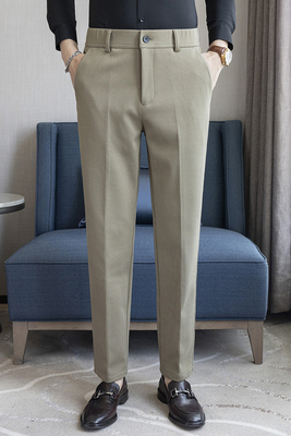 Winter solid color woolen trousers with semi-elastic back waist and casual trousers khaki