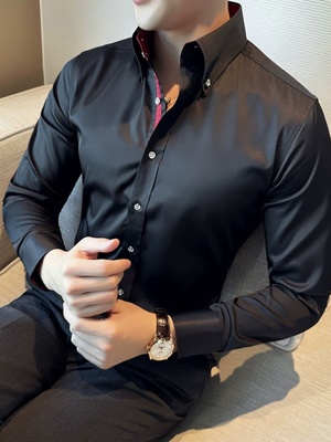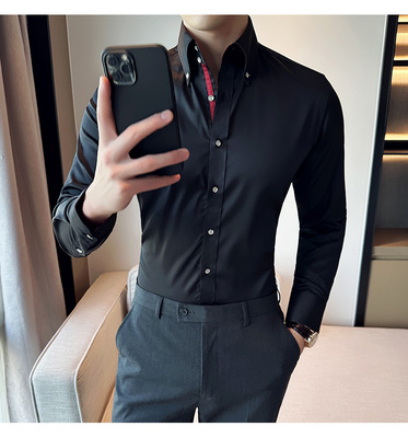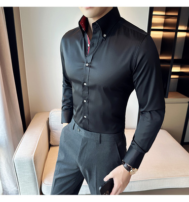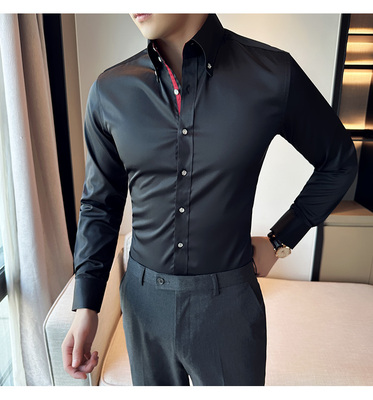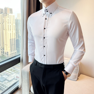 New Korean style slim long-sleeved shirt British style large collar high collar shirt white