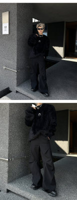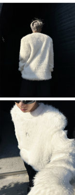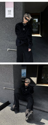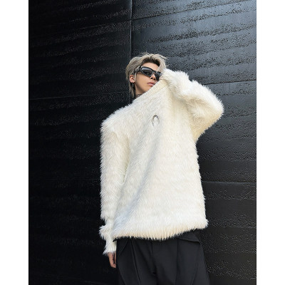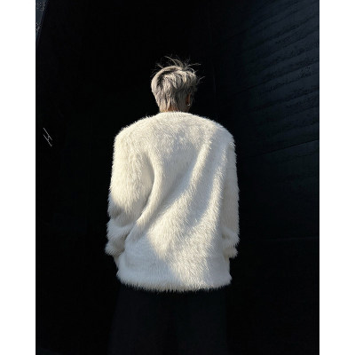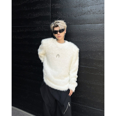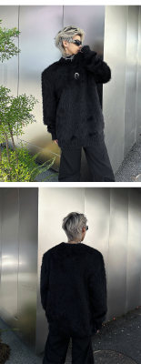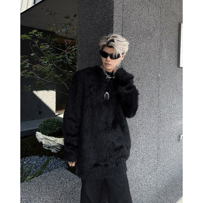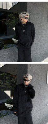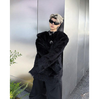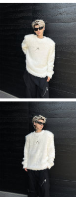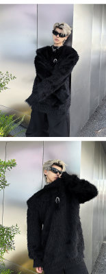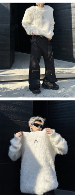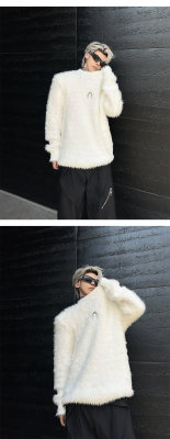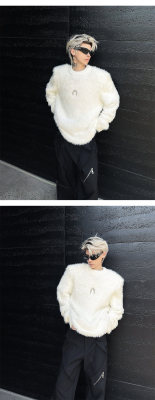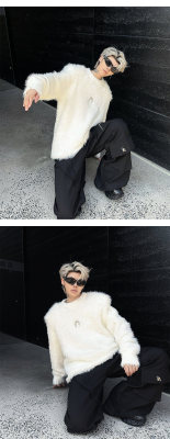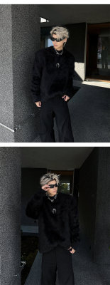 Autumn and winter American retro round neck sweater loose casual fashion lazy style imitation mink sweater