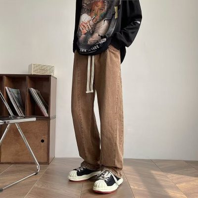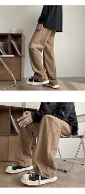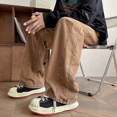 Jeans men's autumn American style pants ins high street trendy brown coffee overalls