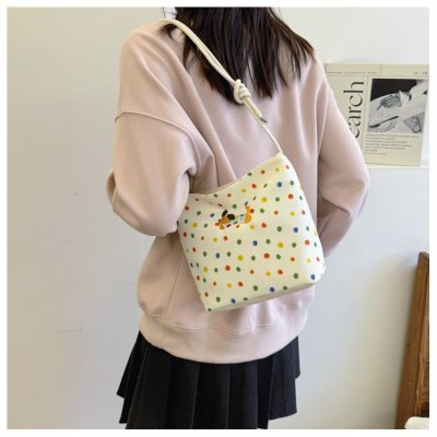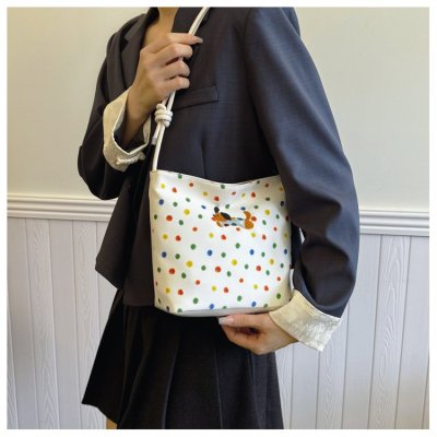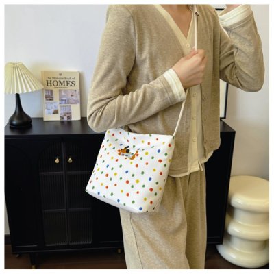 Polka dot large capacity fashionable portable bucket bag for women 2024 autumn and winter new style simple shoulder bag high-end crossbody bag