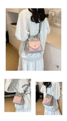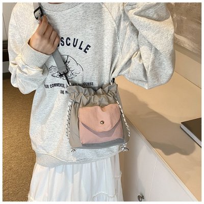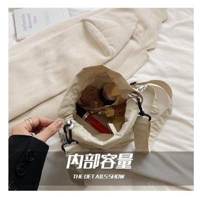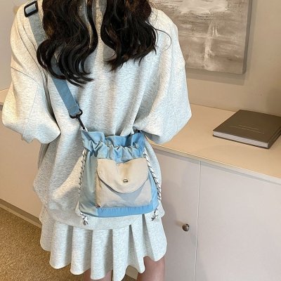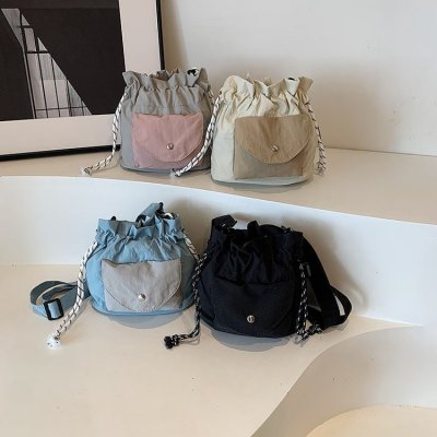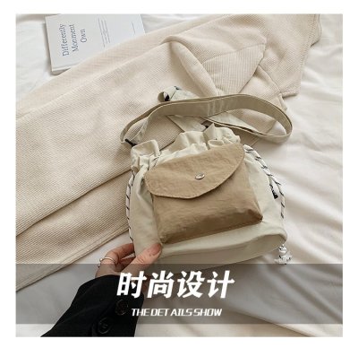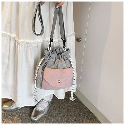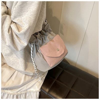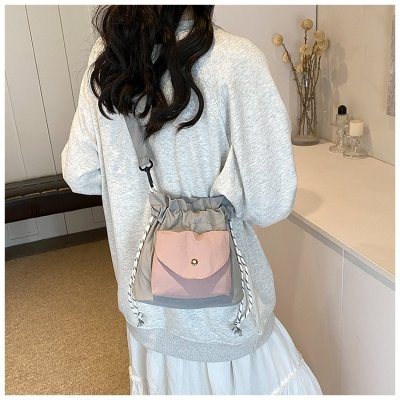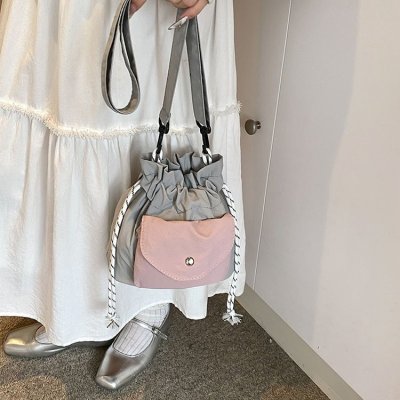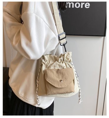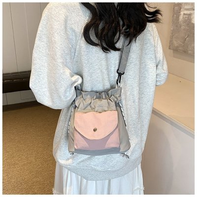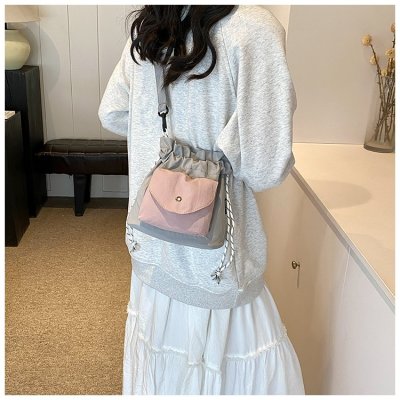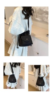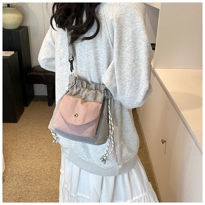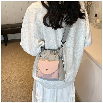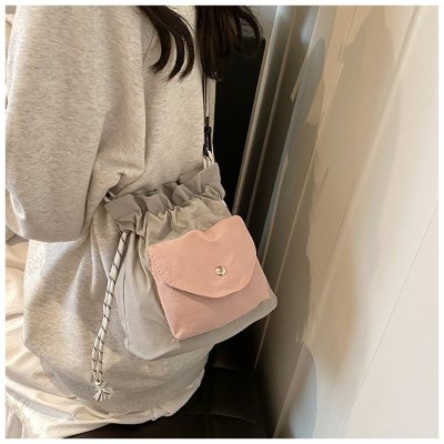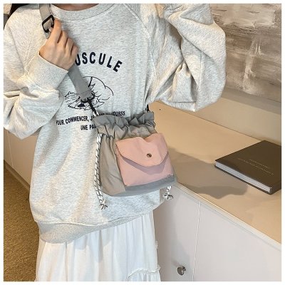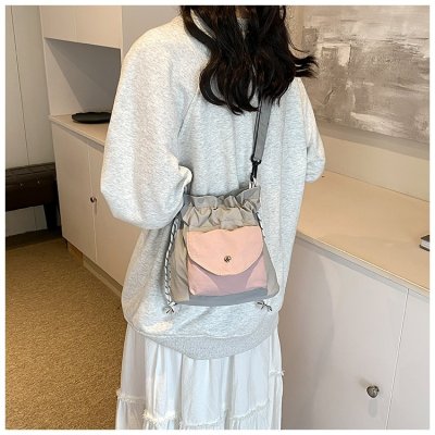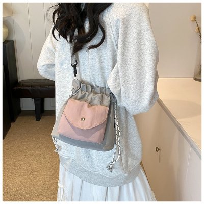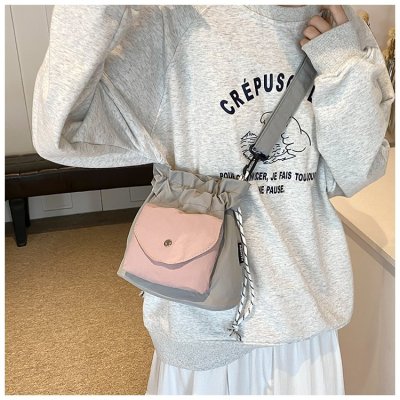 2024 New Korean Style Pleated Drawstring Oxford Single Shoulder Fashion Women's Bag Niche Crossbody Bag Casual Versatile Bucket Bag