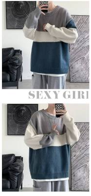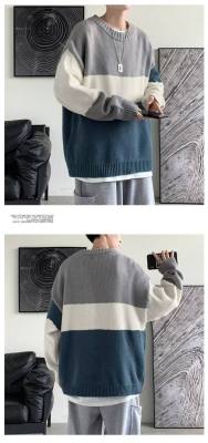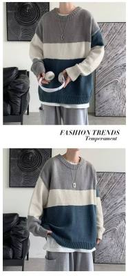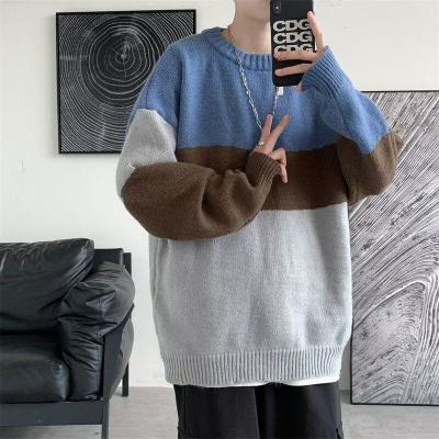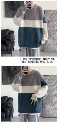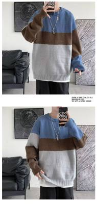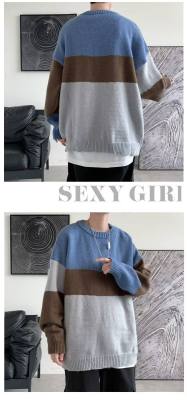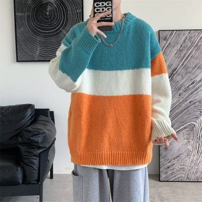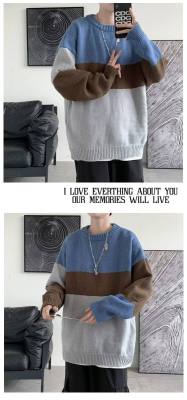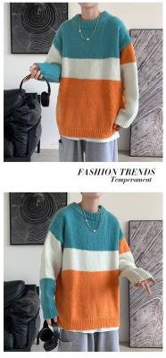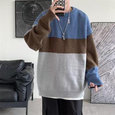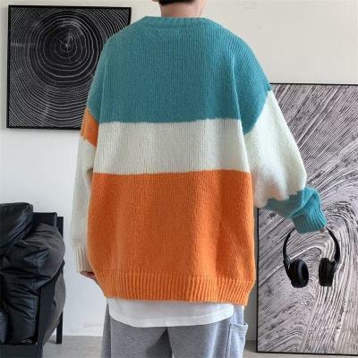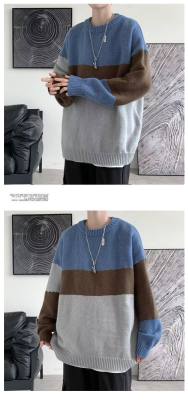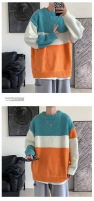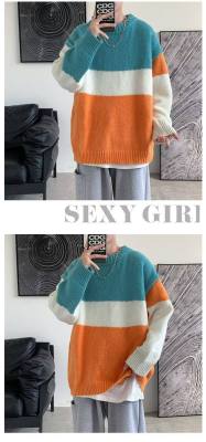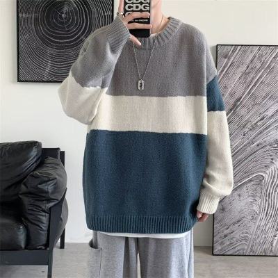 Striped sweater men's ins Hong Kong style Korean style trendy loose round neck sweater autumn and winter style lazy personality Harajuku
