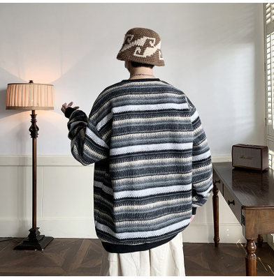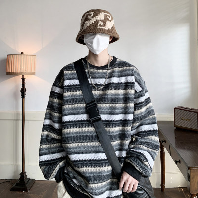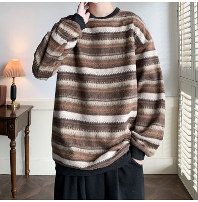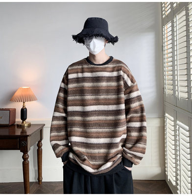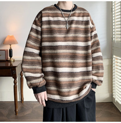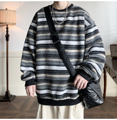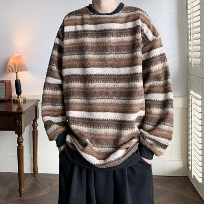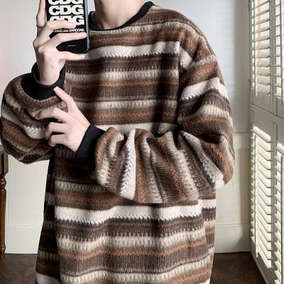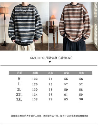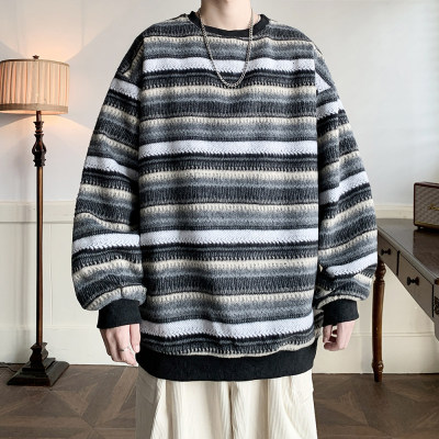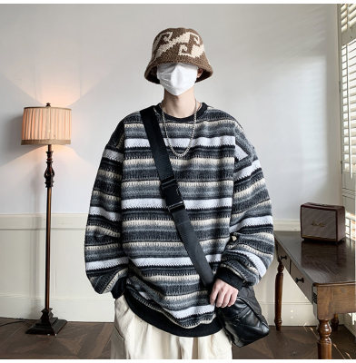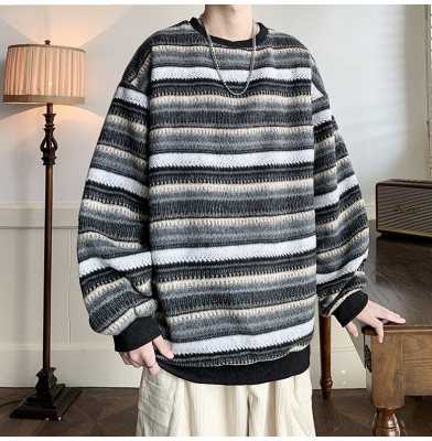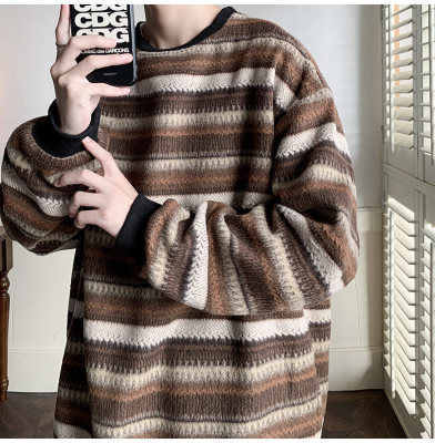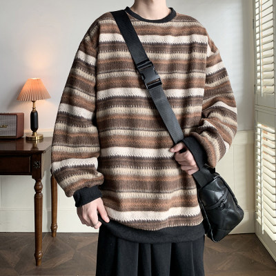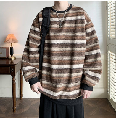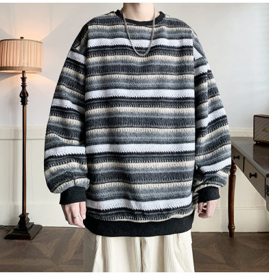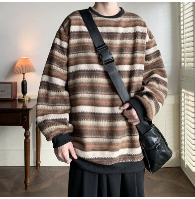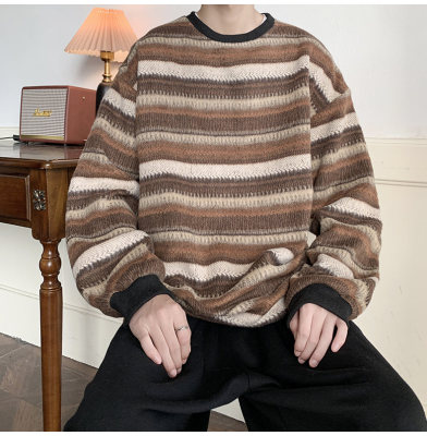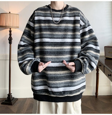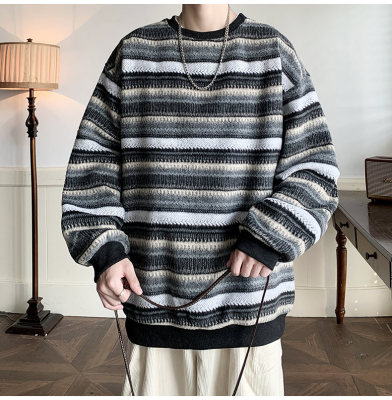 Autumn and winter heavyweight sweatshirt ethnic style striped woolen jacket Japanese style sweatshirt Hong Kong style large size