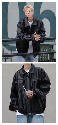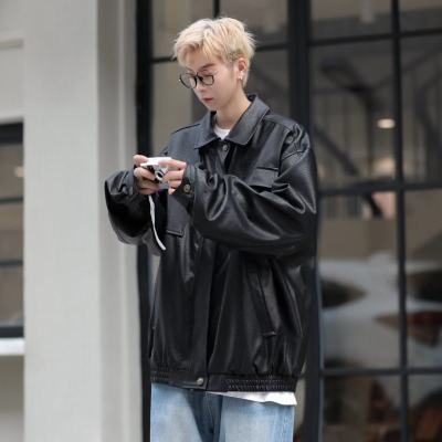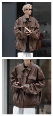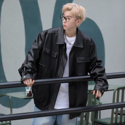 Autumn and winter Korean style trendy retro distressed PU motorcycle style leather jacket men's jacket