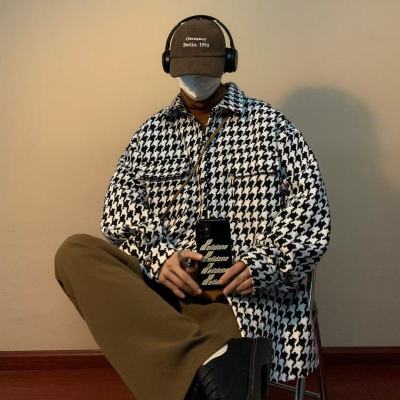 Small fragrant style houndstooth jacket men's design niche design spring and autumn trendy high street jacket