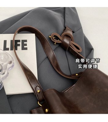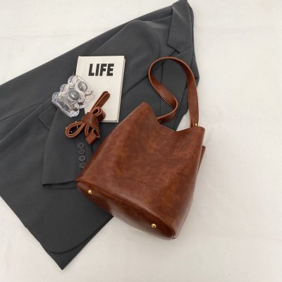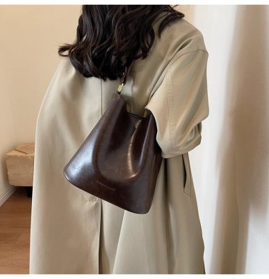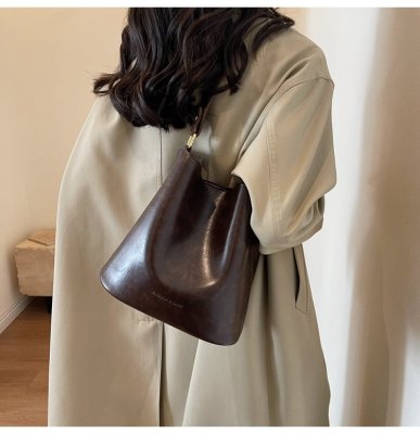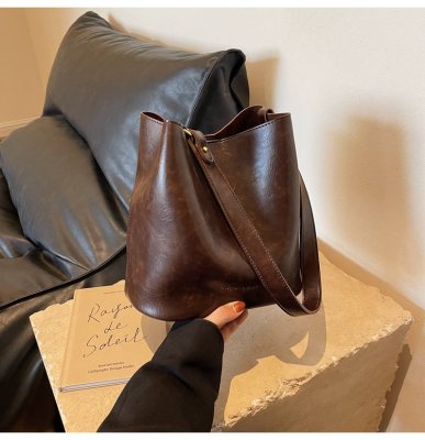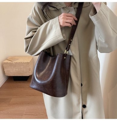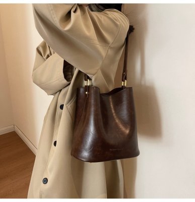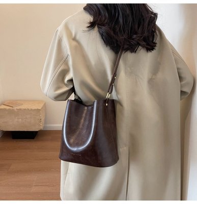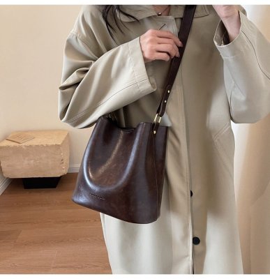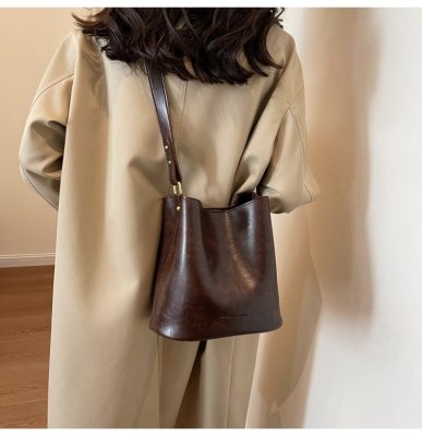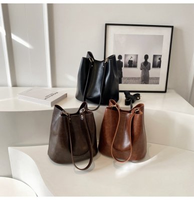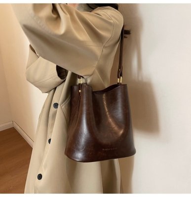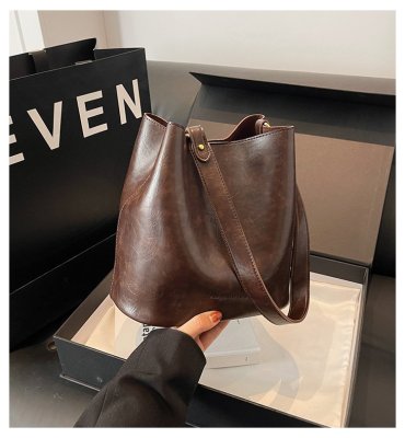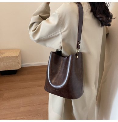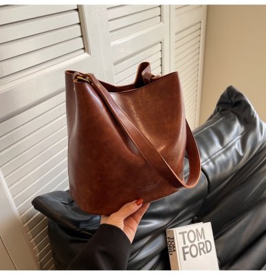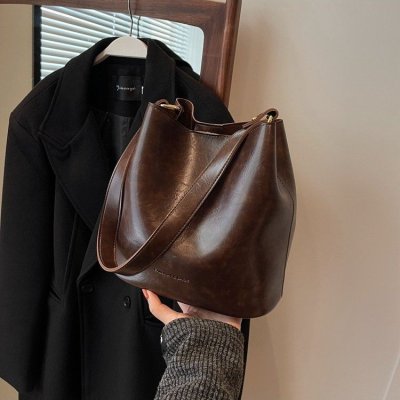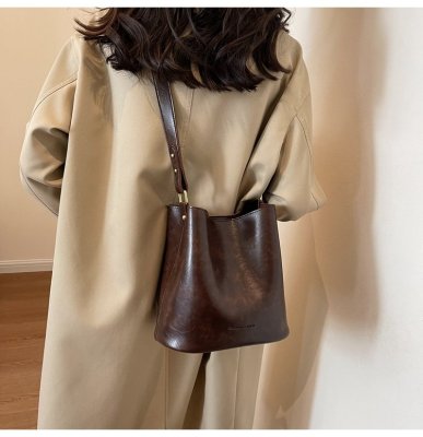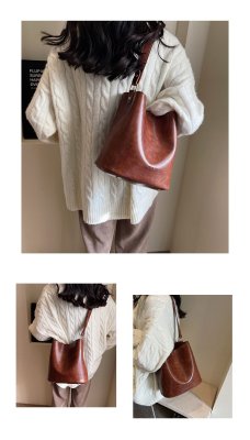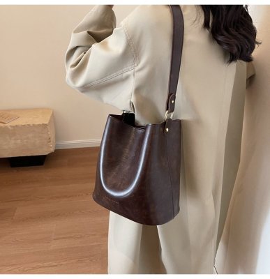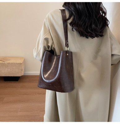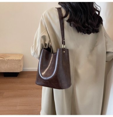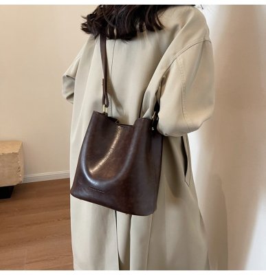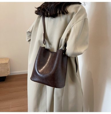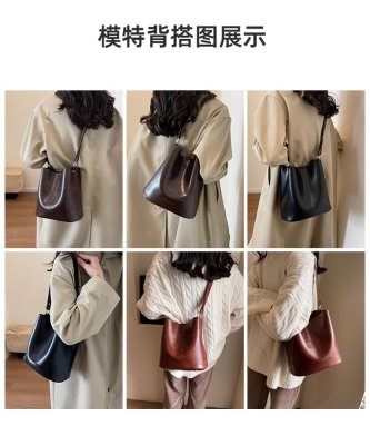 New large bag Korean style bucket bag retro women's bag mother bag commuting large capacity shoulder bag crossbody bag