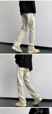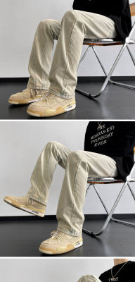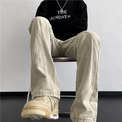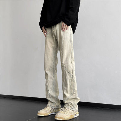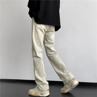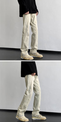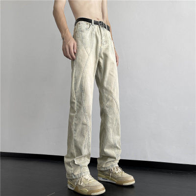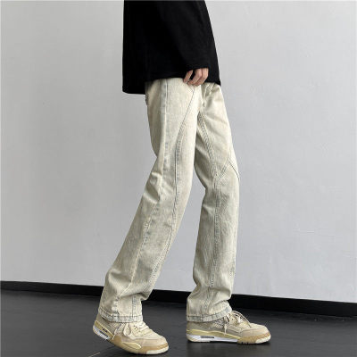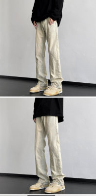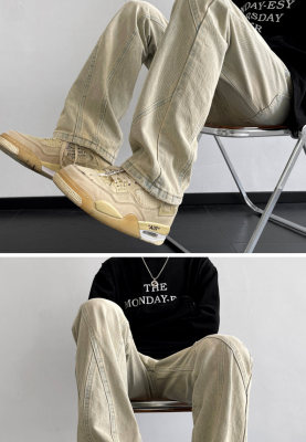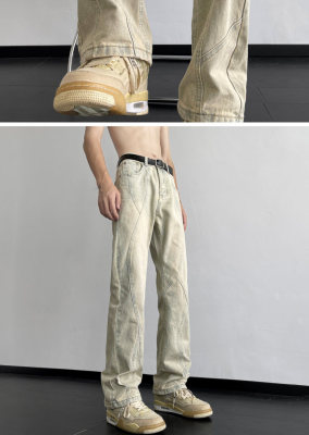 American retro vibe pants high street fashion brand washed yellow mud-dyed jeans men's straight trousers