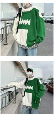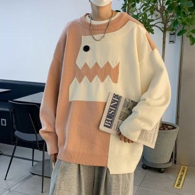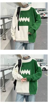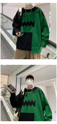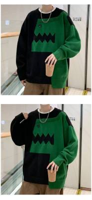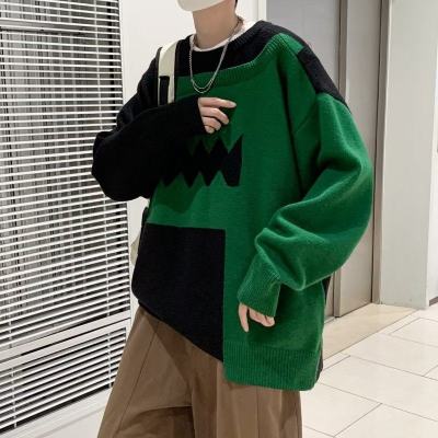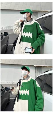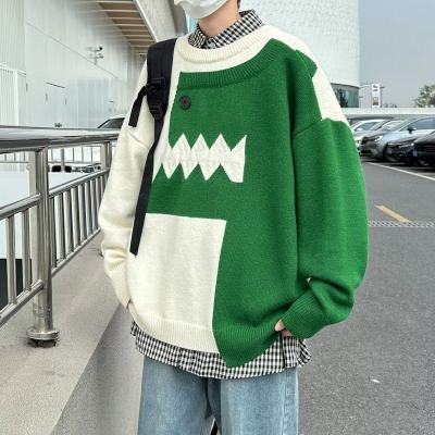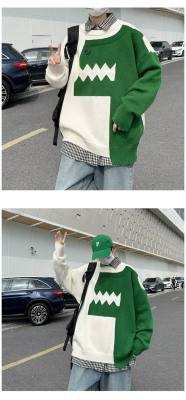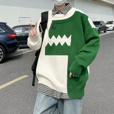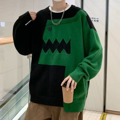 Cute dinosaur sweater men's autumn and winter clothing niche design stitching knitted