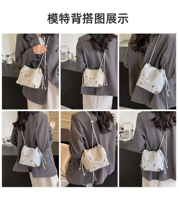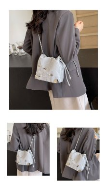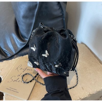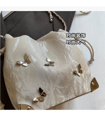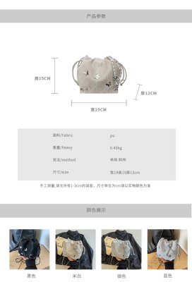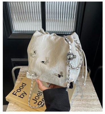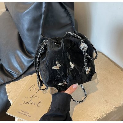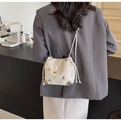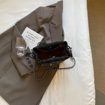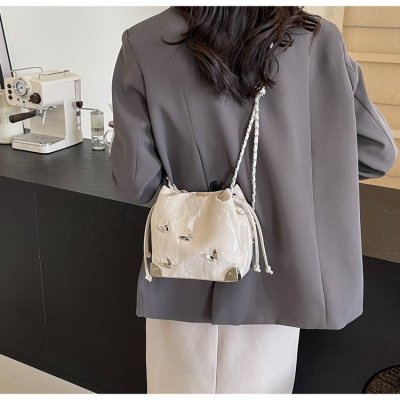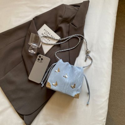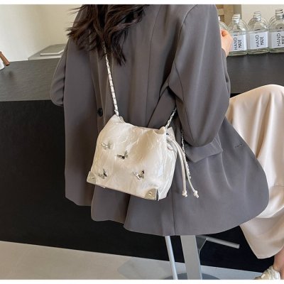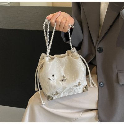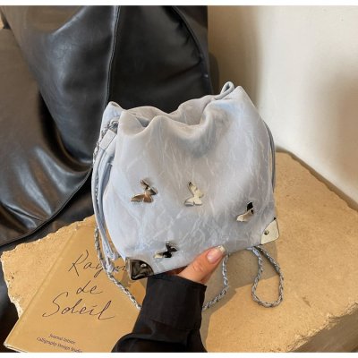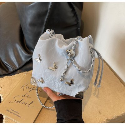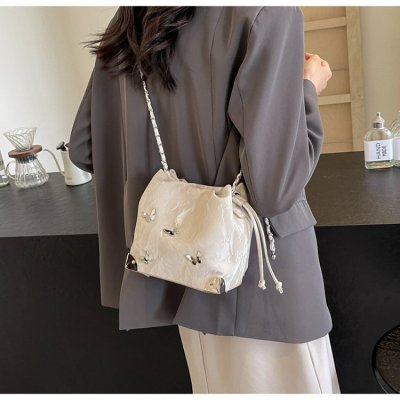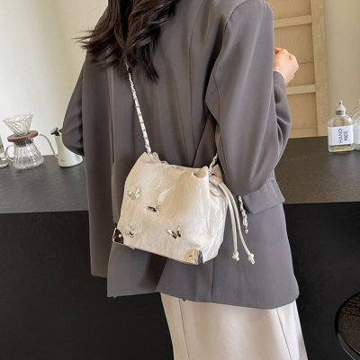 High-end metal bow bucket bag for women 2024 summer new style niche drawstring bag fashionable women's bag